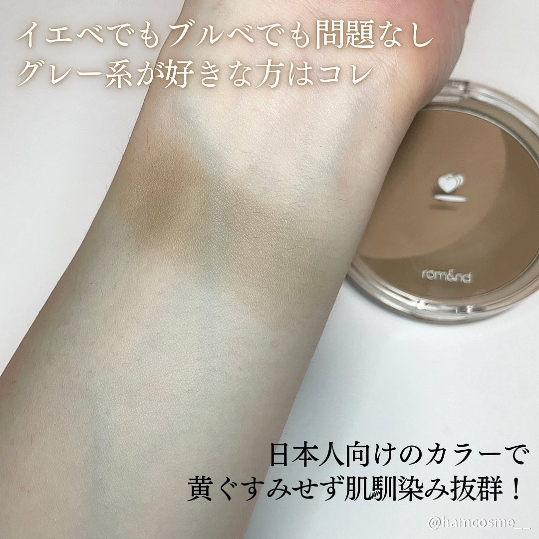 🧸rom&nd#ベターザンシェイプ01オートグレーン淡いカラーと濃いカラー2色のシェーディング01はブルベ向けで、黄味がないグレーがかったブラウン馴染ませやすくとても使いやすいです!自然な発色にしたい場合は、濃い色→淡い色に向かってブラシをい...