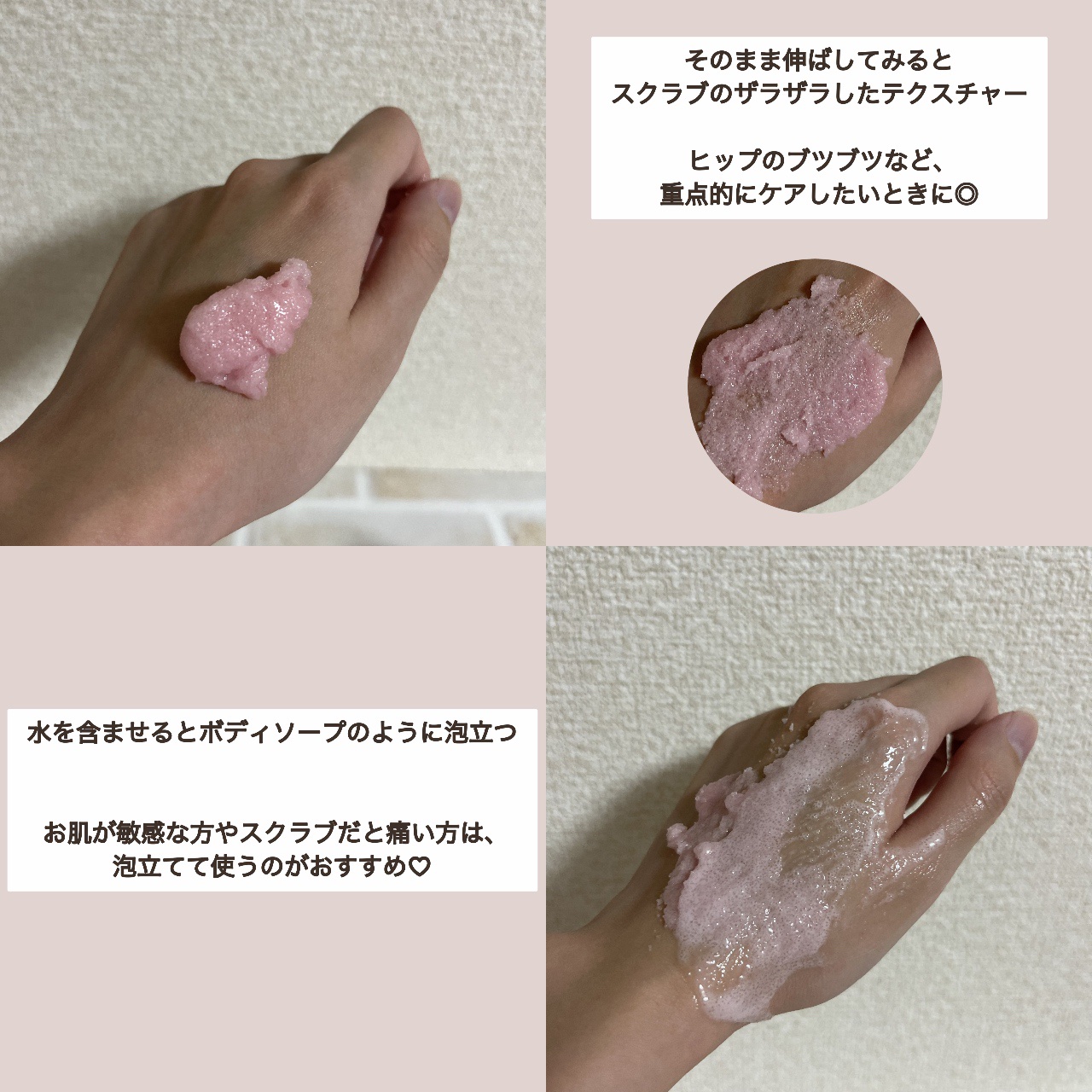- 美容をもっとカジュアルに“AGARISM”とカワイイの欲望を知り尽くした雑誌sweetとのコラボ商品!女性のボディを魅力的にする重要なパーツ「お尻」。古い角質による黒ずみやザラツキ・乾燥ニキビ*などをケア。角質が気になるところにはスクラブとして、気になるデリケートゾーンは泡立てて全身ボディソープとしてOK。バスソルトとしても使える3WAYボディスクラブです。香りもやみつきになるフェロモンな香りにうっとりします! *洗浄によりニキビを防ぐ
