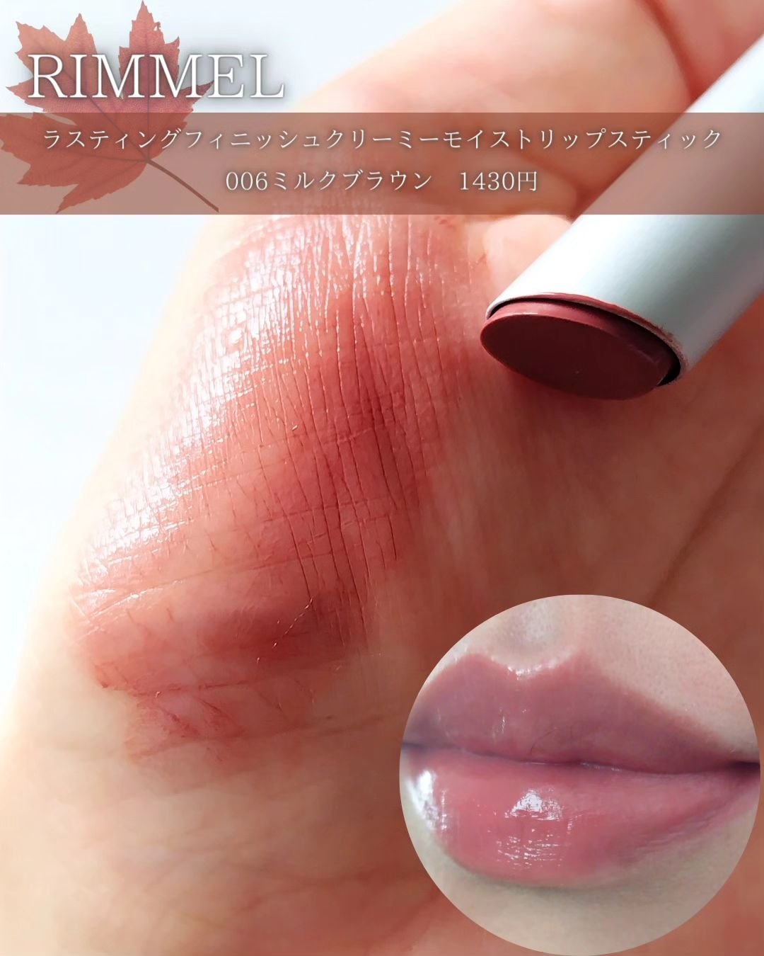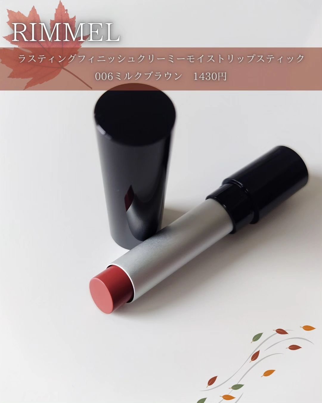 【ブルベさんも使いやすい!ブラウンリップ】リンメルラスティングフィニッシュクリーミィモイストリップスティック006 ミルクブラウンブルベも使える貴重なシアー感のあるブラウンリップ💄塗り心地もとてもなめらか♡色持ちは普通ですが、乾燥しにくくてお...