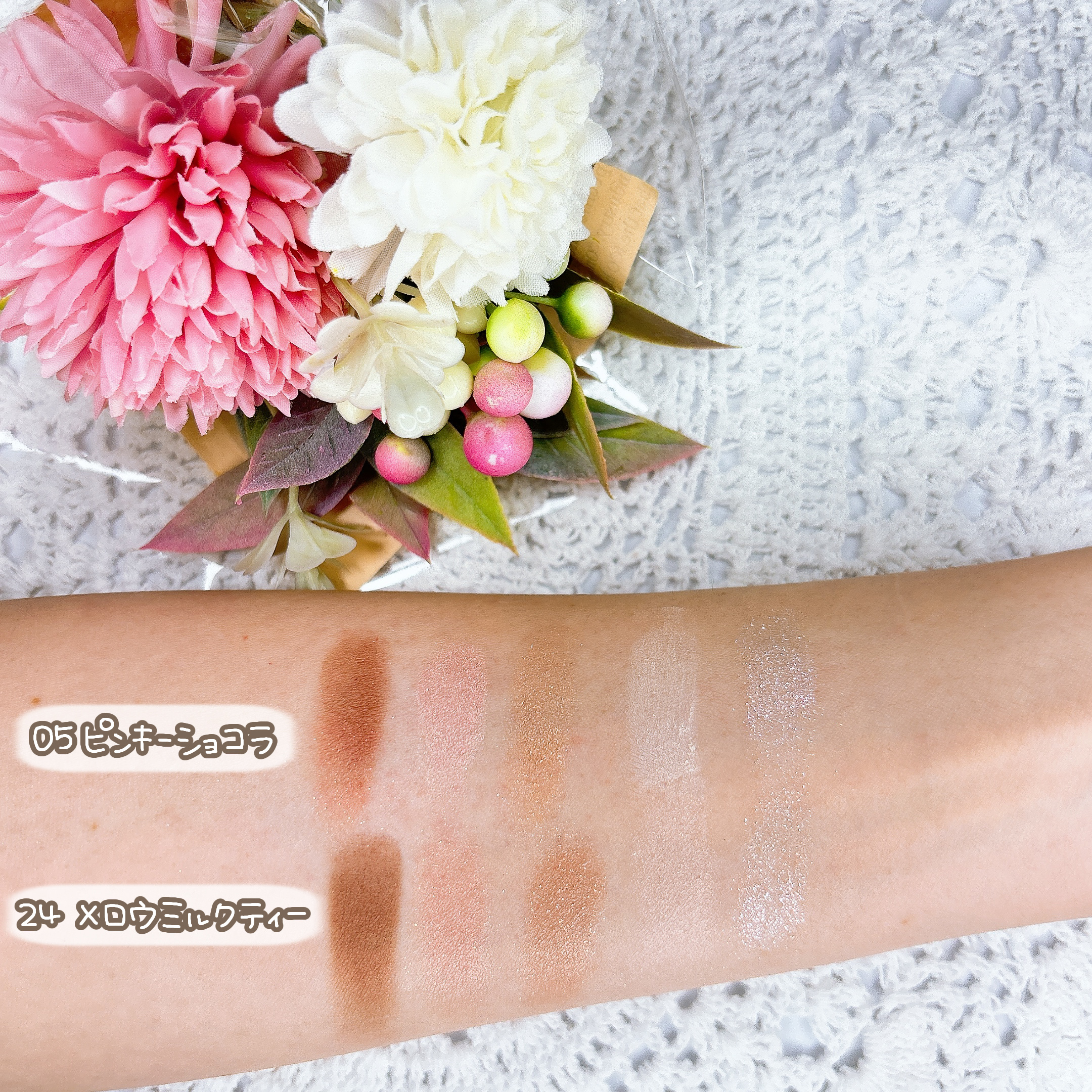 温かな雰囲気で愛されオーラを感じる ナチュラルに色気を宿すカラーパレット 10色の中に5つの質感が閉じ込められていて 重ねるごとに色気が際立つ…💕 粉質はこれViseeなの!?て思うくらい 今までのViseeとはちがう もっともっとしっとりとしてて お肌にぴたーっと密着してくれる感じ😳✨ このラメ感はプチプラじゃないよ… 本当にキレイすぎてずっと眺めていられるし うへへ〜てよ○れが出そうになるくらいキレイ。笑 アイシャドウとしてだけではなく チーク、ハイライト、シェーディング にも使えるカラーが入ってるから これ1つでだいたいのメイク完成させられて めちゃくちゃ時短になるっ◎ 粘膜色だから肌なじみ抜群だし この色味と程よいツヤのおかげで 血色感と透明感も叶えてくれるし ぬってすぐにティッシュでふいても しっかり色が残ってくれるし 良すぎてかわいすぎて困る!笑 塗るときもじゅわっと溶けるような 唇の上でするするすべる感じもお気に入り🥰