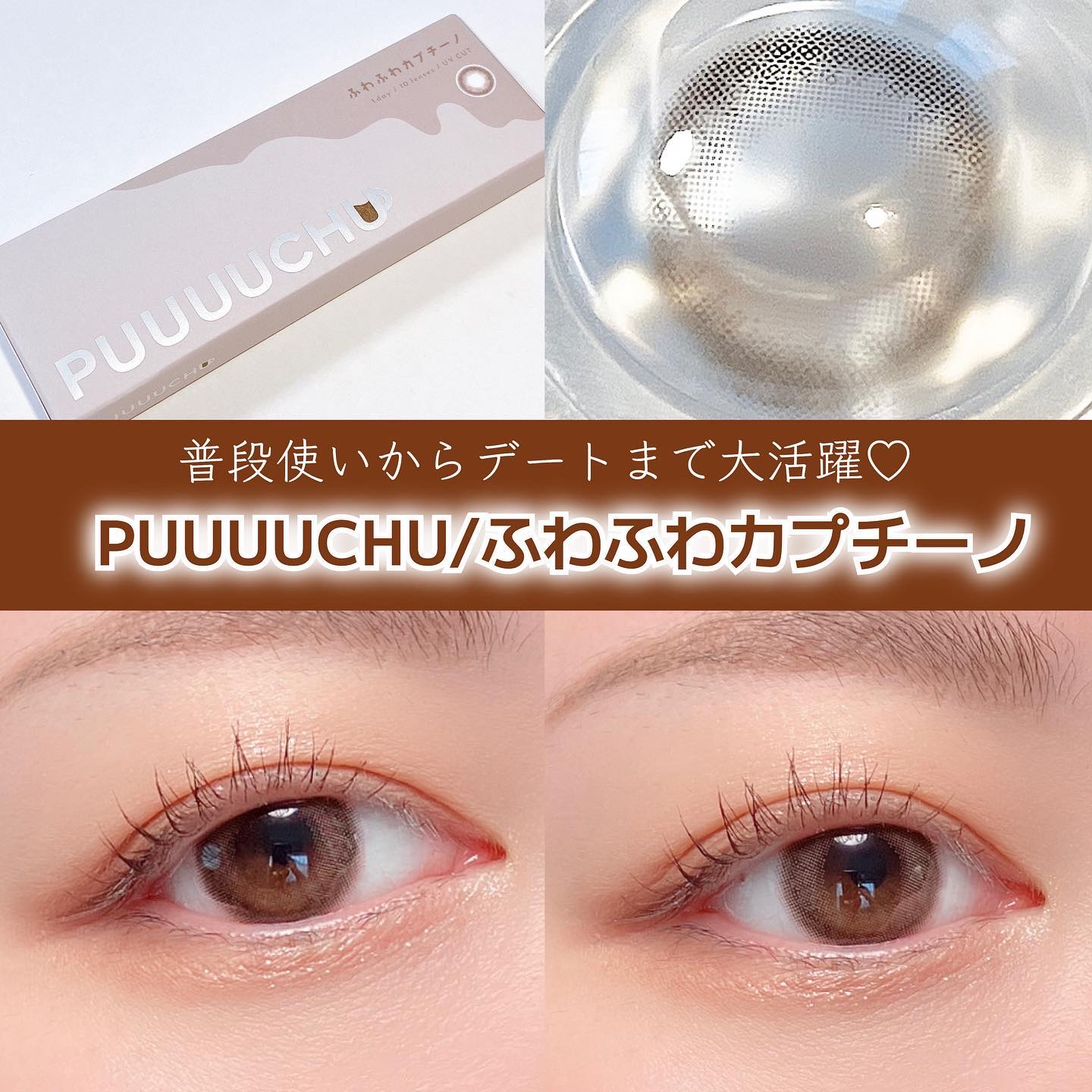 - ※2023年7月よりパッケージ底面カラー名表記部分、順次リニューアル。尚、これに係る商品の返品・交換等は承っておりません。 女の子の「かわいい」がぜーんぶ叶うよくばりなラインナップ 絶対ばぶフェイス♡ちゅるんチョコフラッペ DIA14.2mm/着色直径13.5mm 細フチ×ピュアベージュ ピュアちゅるんレンズで守りたくなっちゃうような甘めの瞳に 王道人類モテ♡ふわふわカプチーノ DIA14.5mm/着色直径13.7mm ぽんわりフチ×ふわブラウン フチふんわりシフォンブラウンレンズで優し気な瞳に 超絶盛れ地雷女子♡きゅるきゅるダークモカ DIA14.5mm/着色直径13.8mm 溶け込みグラデ×きゅるんブラック くっきり暗めカラーレンズでお人形さんみたいにくっきりとした印象の瞳に 韓国系クール美人♡ぷるるんソーダフロート DIA14.2mm/着色直径13.2mm うるうる質感×透明感ブルー うるうる透明感ブルーグレーレンズでクールビューティーな瞳に 商品名 :PUUUUCHU(プーチュ) 価格 :1,650円 税込(10枚入り) カラー :全4色 レンズ :BC8.6mm DIA14.2mm/14.5mm UVカット 含水率 :38% 使用期間 :終日装用、一日交換 度数 :0.00D(度なし),-0.50D~-6.00D(0.25D刻み),-6.50D~-10.00D(0.50D刻み) 販売名 :ワンデーツッティアルファ 承認番号 :22400BZX00427000 カラーコンタクトレンズの不適正使用による眼障害の危険性等などがあります。 ●コンタクトレンズは高度管理医療機器です。不十分な洗浄・消毒など不適切なケアや、長時間・交換期間を超えた装用により、アレルギー性結膜炎、角膜感染症、角膜潰瘍等の重篤な眼障害が発生する危険性があります ●ご使用前に取扱説明書を確認してください 使用上の留意事項 ●眼科医院等を受診してからお求めください ●眼に異常を感じたら直ちにレンズ使用を中止し、お近くの眼科等で診察を受けてください ●医師の指示にしたがってご使用ください ●コンタクトレンズを装用する場合、自覚症状がなくても、眼科医院等での定期検査を受けてください ●レンズに不具合がある場合は使用しないでください