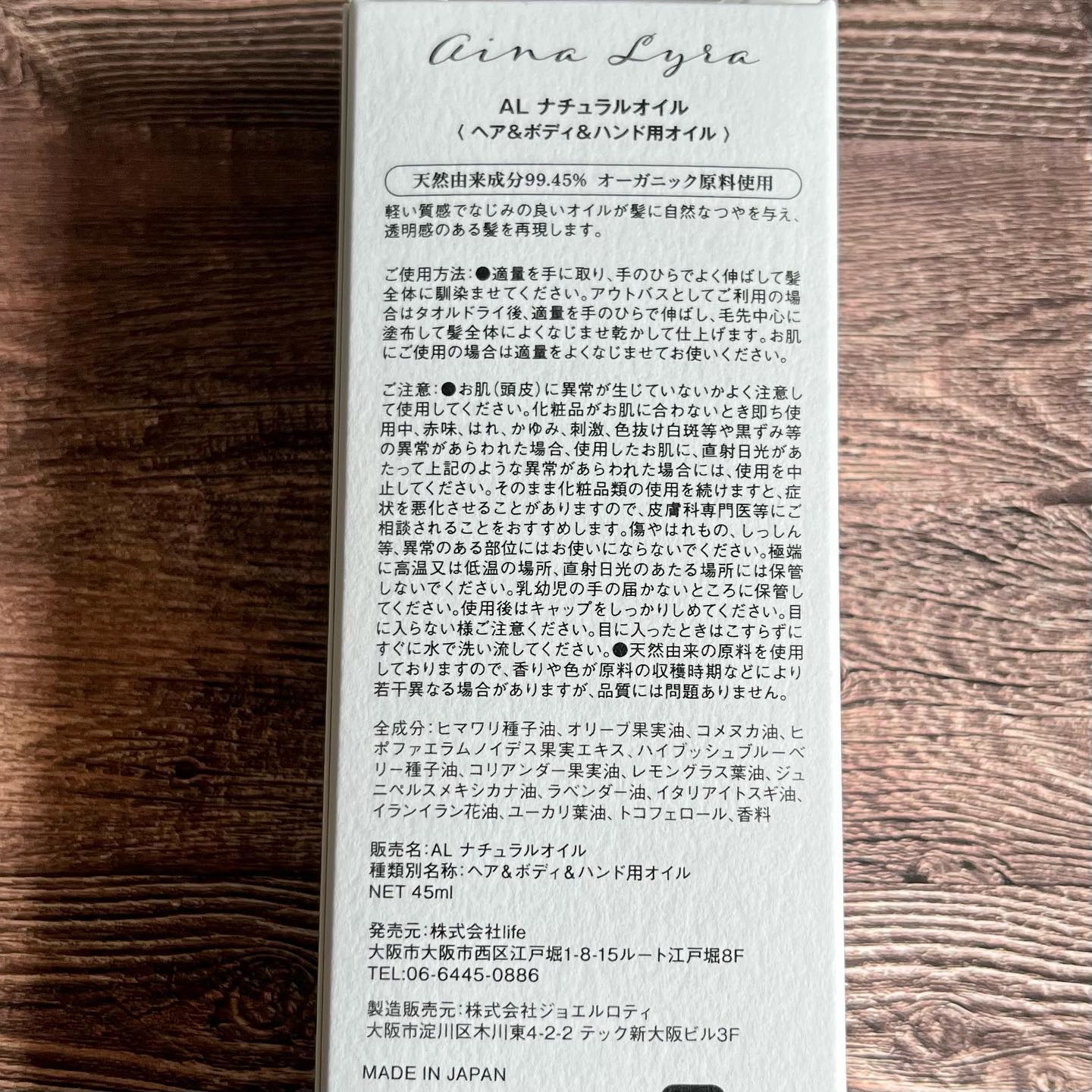 商品詳細情報ainaLyra ナチュラルオイル〈ヘア&ボディ&ハンド用オイル〉