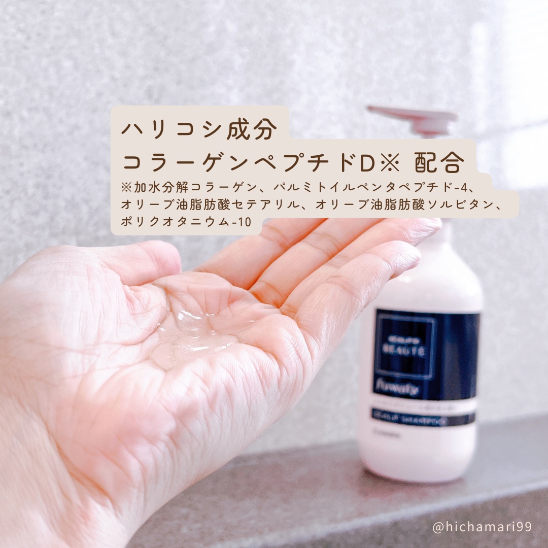 - もちまで弾む、ふわり髪へ スカルプD ボーテで始めるファーストボリューム感ケア 【根元からふんわりボリューム感】 髪をコーティングするハリコシ成分配合。 根元からふわっと立ち上がるスタイリングを実現。 【ダメージ補修&なめらかな指通り】 髪と頭⽪のうるおいを守りながら洗い、髪のダメージを補修。 指通りの良いツヤのある髪へと導きます。 【摩擦を抑えてやさしく洗う】 アミノ酸系の洗浄成分配合。弱酸性の濃密ふわもち泡。 女性の頭皮トラブル「乾燥」「フケ・かゆみ」「ベタつき」「ニオイ」にアプローチ。 【5つの無添加設計】 ※ シリコン、鉱物油、合成着色料、パラベン、サルフェート(硫酸系化合物)不使用 【リラックス感のあるアロマティックカシスの香り】