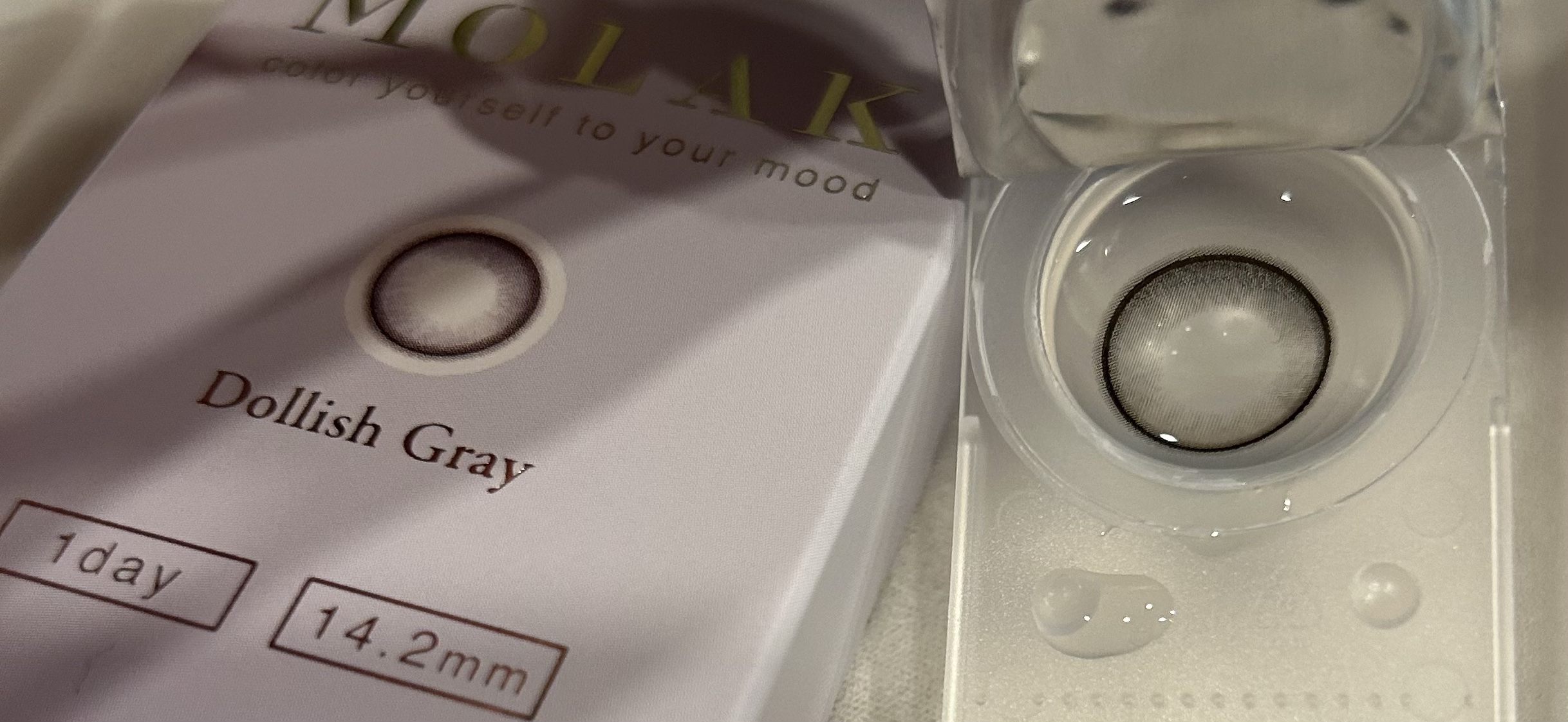 モラクドーリッシュグレーDIA14.2mm着色直径 13.2mm(体感13.3mm弱)BC8.6mm含水率55%2枚目 自然光3枚目 室内4枚目 室内(暖色ライト)5枚目 レンズ 6枚目 似てそうカラコン比較(ドーリッシュグレー/ぴゅあベージ...