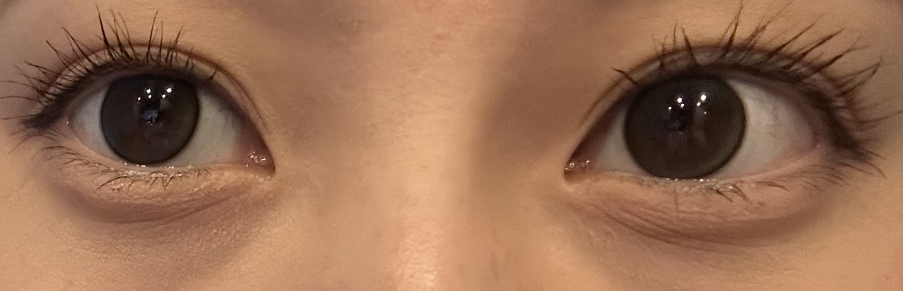 中の本当にココアみたいなくすみブラウンカラーが他には無い感じでじゅわーっとした発色が最高ですね 中のカラーが明るめでリング状になってると結構派手な感じになりやすいんですが、このじゅわっとした感じのおかげでそこまで派手だったりキツくは見えないです きゅるっと丸い目に見えて本当に可愛らしい印象になりつつ立体感がしっかり出て、写真盛れも現実盛れも間違いない気がします