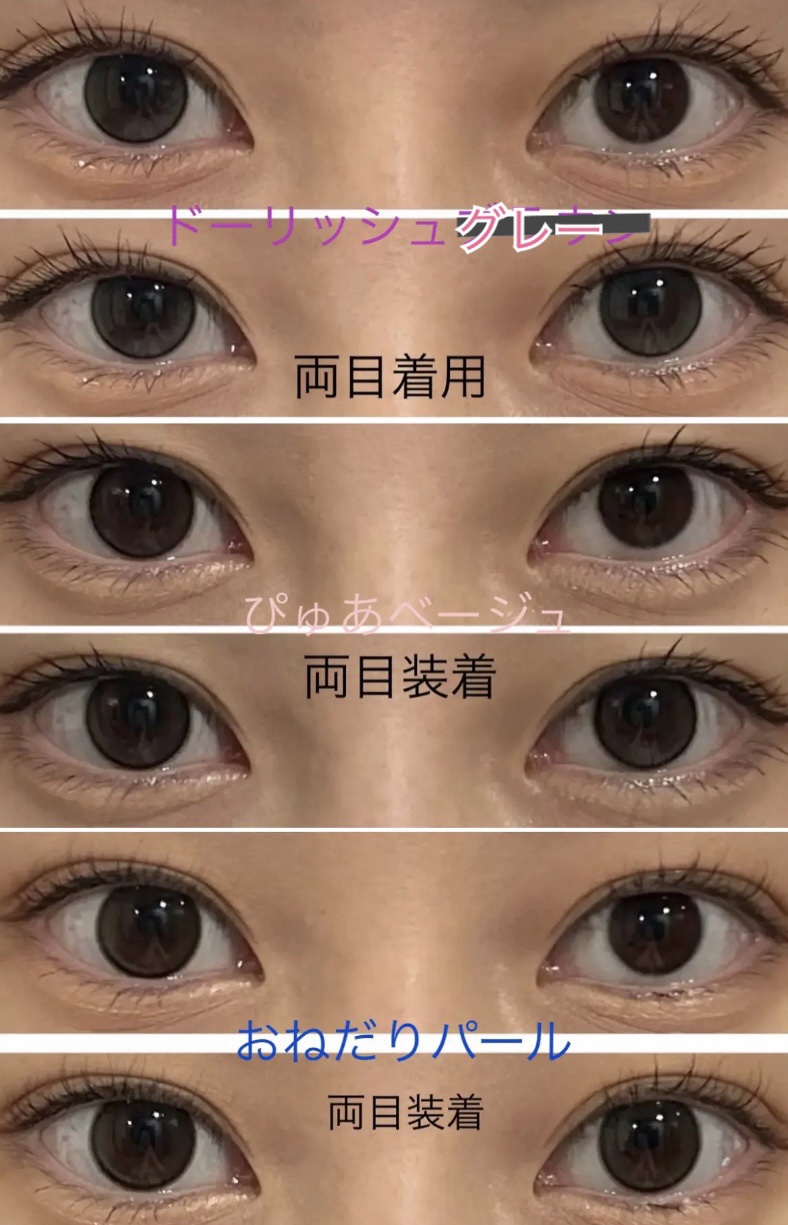 シンプルで柄なくてちゅるん!!これはいい パールベージュにかなり似てる 大きすぎず、小さすぎずで本当にパールベージュとおねだりパールの間くらい 白目透けない 大人あざとい感じ フチはおねだりぱーるより細いけど色はわかりやすい 暗めのフチでちゃんと主張してくるタイプだけどそれがかわいい、最高や 今までつけたパールベージュに似てる系カラコンの中でもかなり似てる おねだりパールからみどり感を取った感じ パールベージュの少し赤みのある感じとかバリバリに似てる これこそパールベージュの小さい版や!!!!