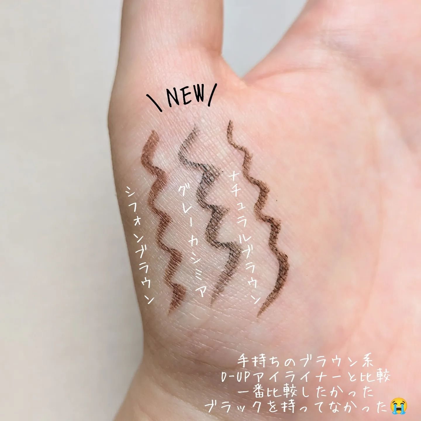 最近のお気に入りアイライナー👀ディーアップの密着リキッドアイライナー/グレーカシミア。ブラックほど強くなくて、ブラウンよりも大人っぽい絶妙カラー🩶目元がキツくなりすぎないから、ナチュラルメイクの日も使いやすい◎細いラインも描きやすくて、目尻だ...
