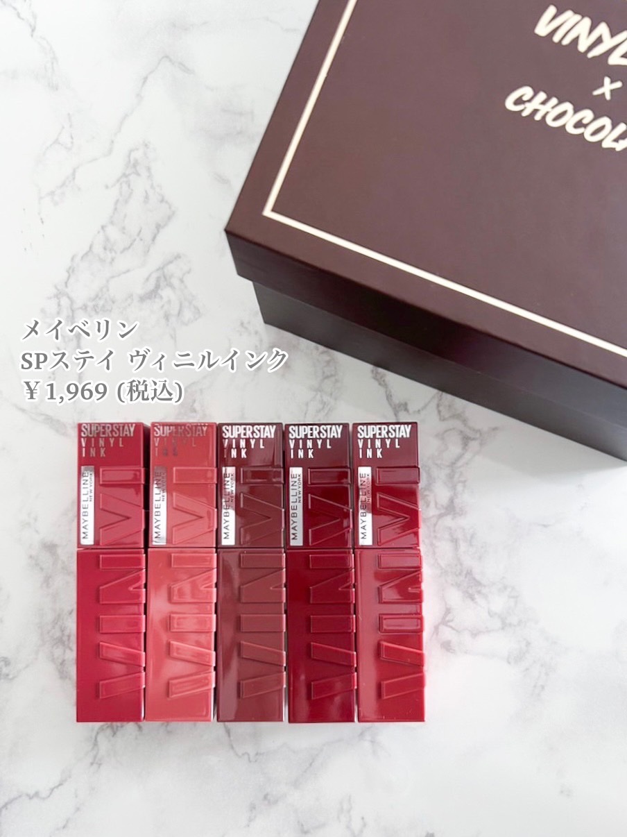 落ちないリップで大人気のメイベリン ニューヨーク SPステイ ヴィニルインク💄 飲み会や夜まで外にお出かけするときに大活躍! クレンジングシートで擦ってみたんだけど全く落ちなくてびっくり🫢 カラーの上に形成記憶のツヤ膜層が広がることで落ちにくさを実現してるんだそう💗 今回のシリーズは夜をモチーフにした可愛いカラー名になっていてどれもおしゃれで欲しくなっちゃう🥰