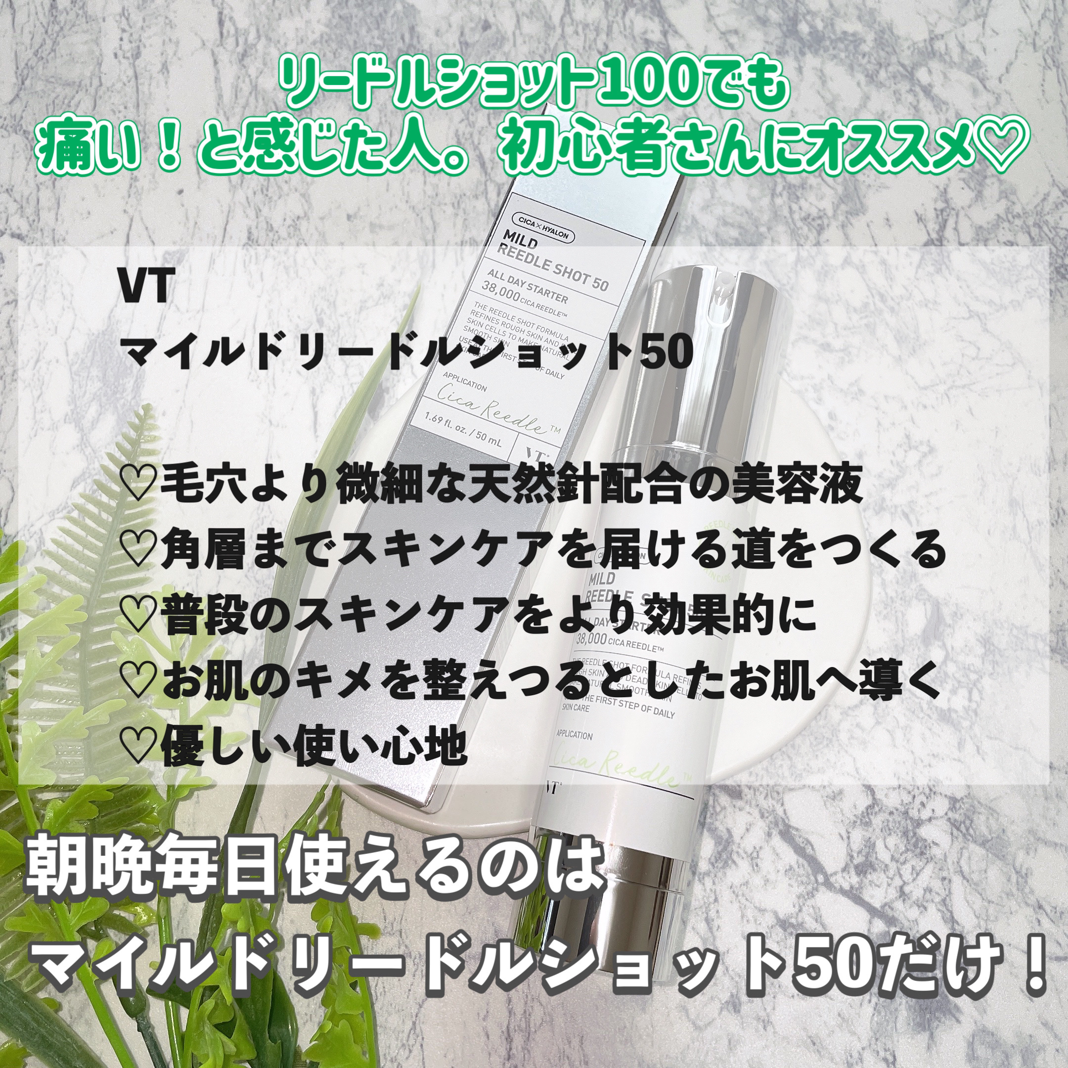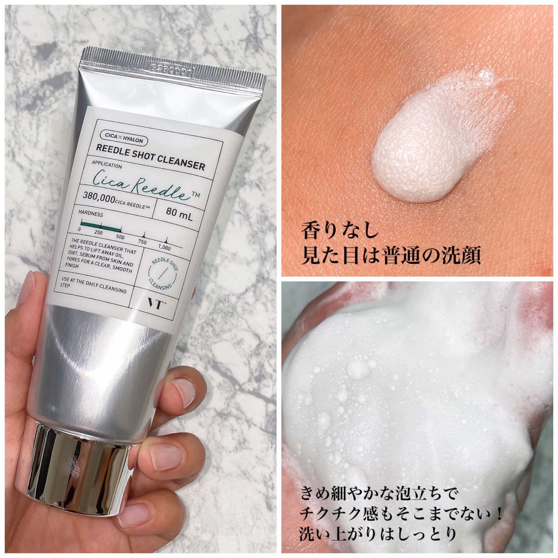 VT独自成分CICA REEDLE™M美容針が角層まで浸透し、お肌のキメを整えブースティング なめらかなテクスチャ。美容針が程よく300はややチクチク感があります。 50はほとんどチクチク感じないので、初めての方はこちらから使うのが良いかもしれません。