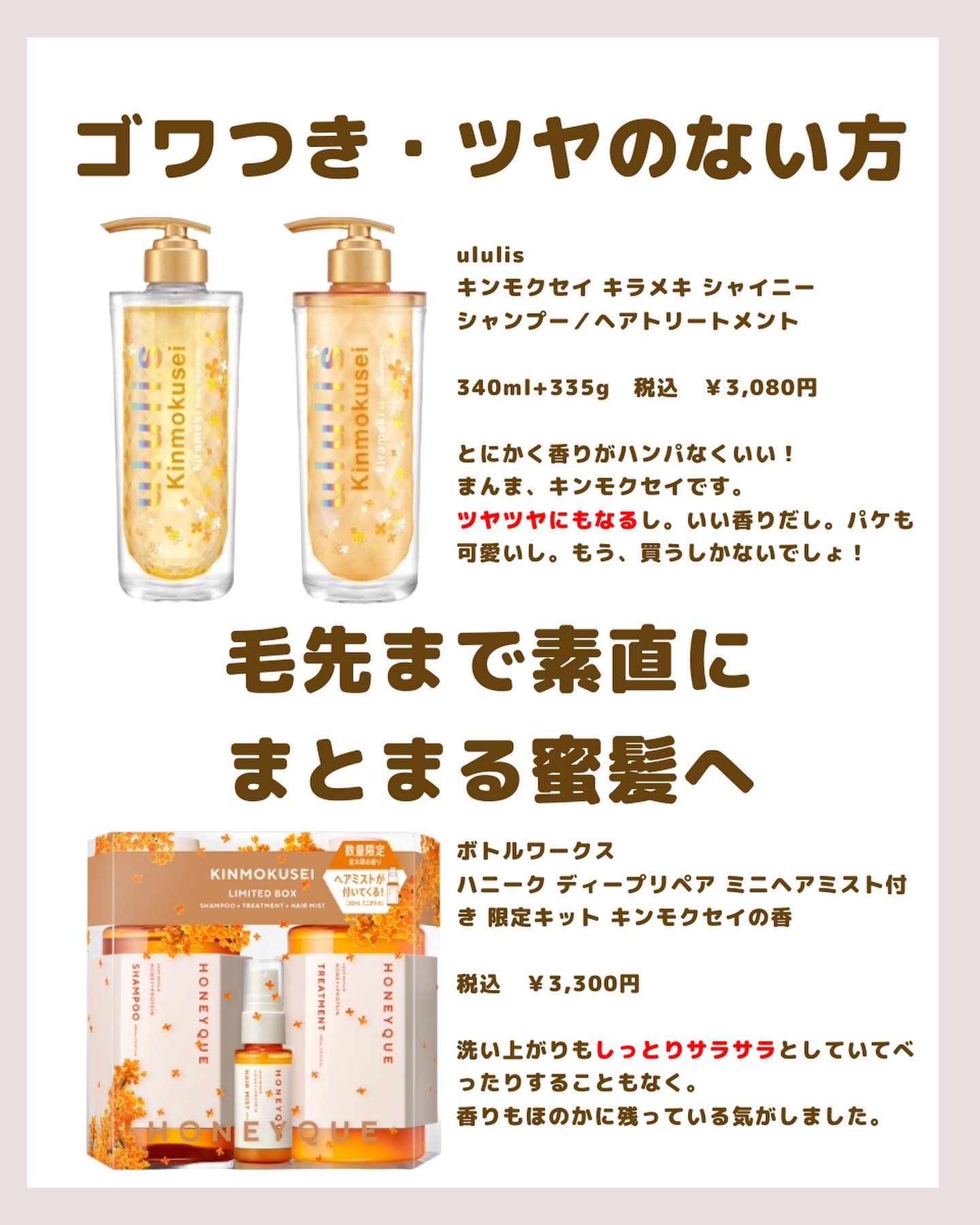 | つけたときの香りはキンモクセイの香りがしっかりして、大人な上品な香りにうっとりしてしまいました💓 | 詳細を見る | |