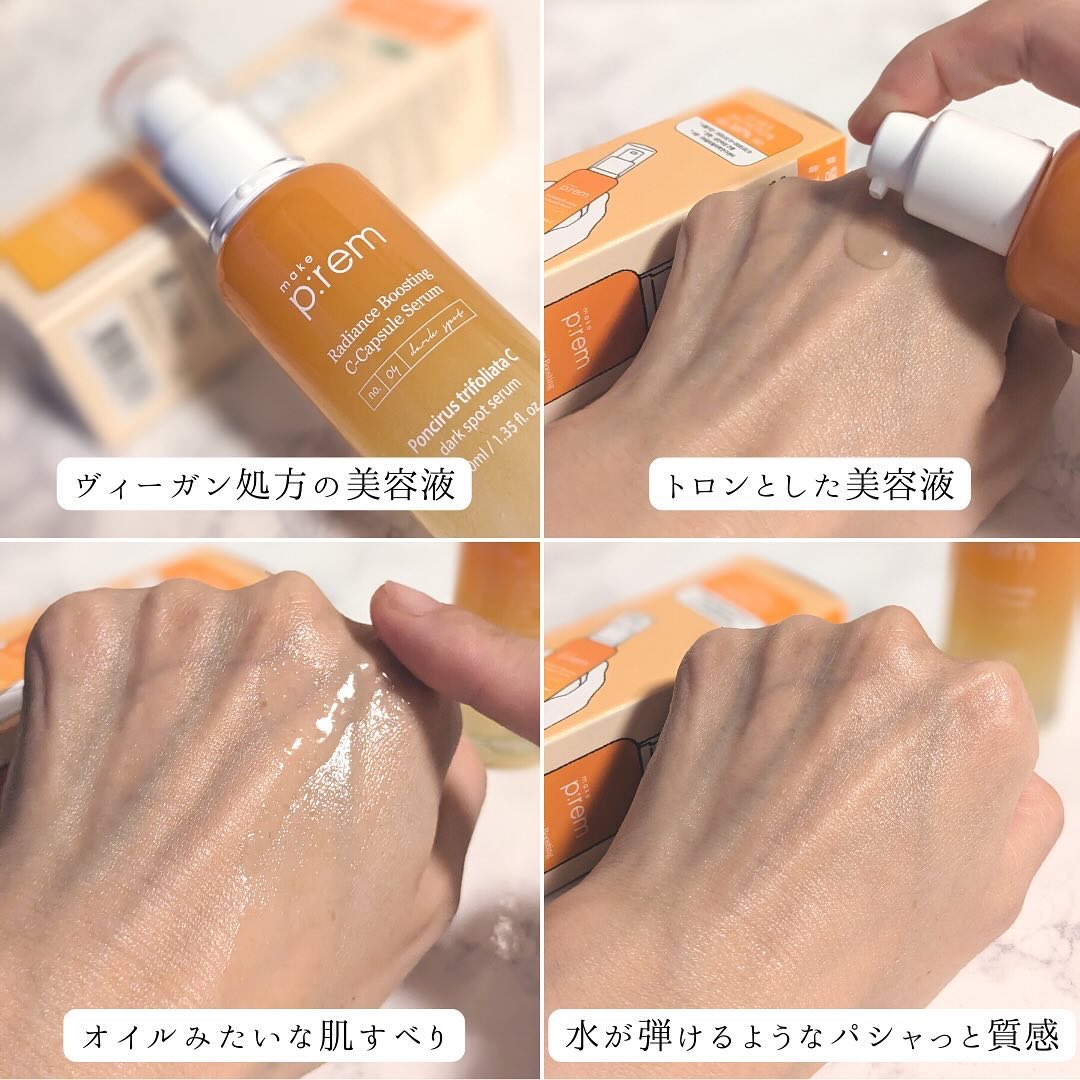 #PRメイクプレム💛ྀི˚.꒰カラタチ果実くすみケア美容液꒱.˚テンジャCカプセルセラム40ml・ビタミンC・トラネキサム酸・カラタチエキス66%フレッシュなテンジャCカプセルが入ったセラムテクスチャーしっとりツヤ肌の使用感シミくすみそばかす...