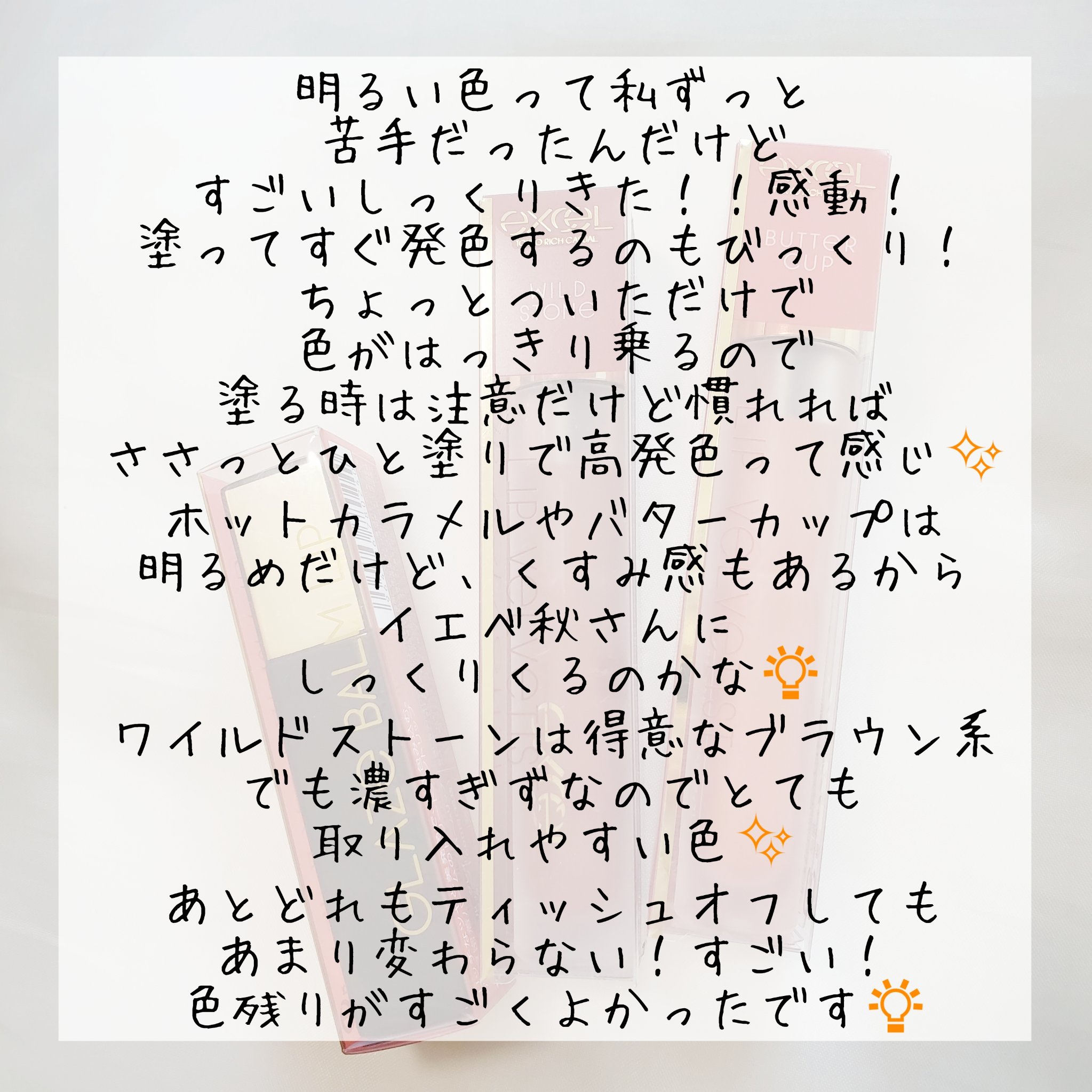 | 口紅・グロス・リップライナーランキング第141位 | するするっとぬれる質感と透け感のある発色で、全部のカラーにほんのりベージュのニュアンスがあるから肌なじみが良い! | 詳細を見る |