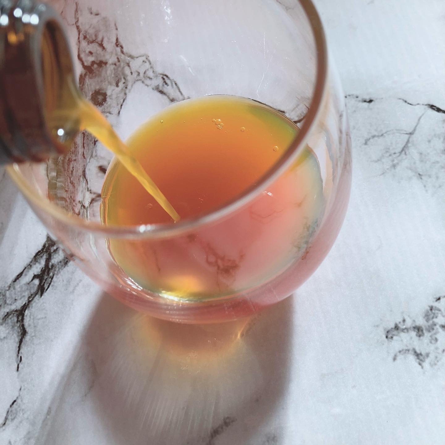 美容特許成分(コケモモ+アムラ果実)に加え、トマト種子エキス、桜の花エキス、GABA、クロセチン、低分子コラーゲン、ヒアルロン酸、セラミド、ビタミンCを配合。 低カロリー、ノンカフェインと女性に嬉しいドリンク! このドリンクはミックスフルーツ味でトロピカルな風味で甘すぎず苦味などもなくおいしくて飲みやすい🍹