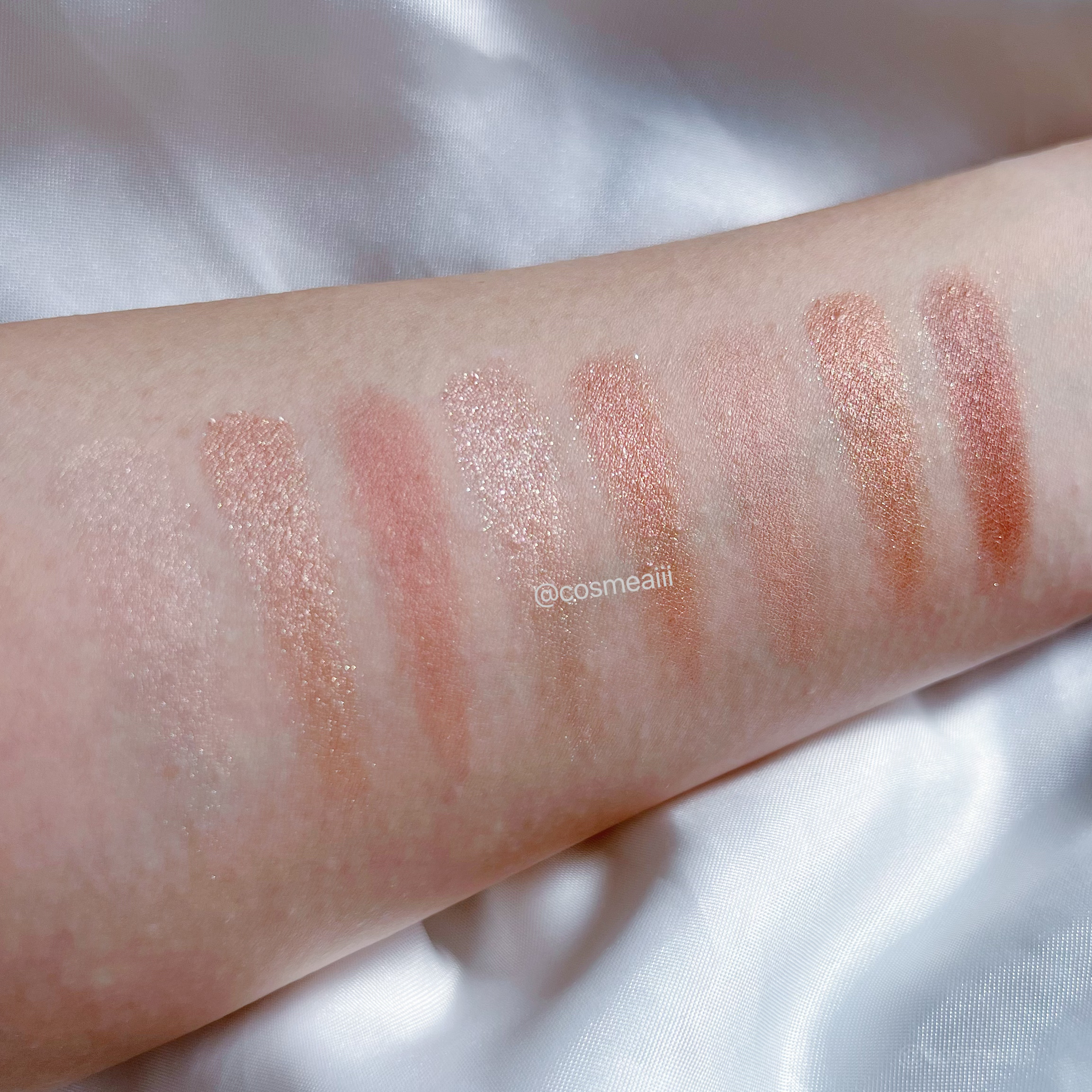 04 ザ・ナラティブ はクールトーンの配色で グレーカラーとかくすんだカラーが多くて 組み合わせは昨日紹介した03より難しいかもしれません。 ヒンスいつも通りの滑らかで発色が良い ただしこのパレットのポイントカラーの ブラックカラーは濃い色なので、キレイに伸ばせないです😢 一番左上はクリームタイプのアイシャドウです 恐らくアイシャドウベースだと思います。 今回の新色03と04 個人的には03の方が気に入りです🌷❤️