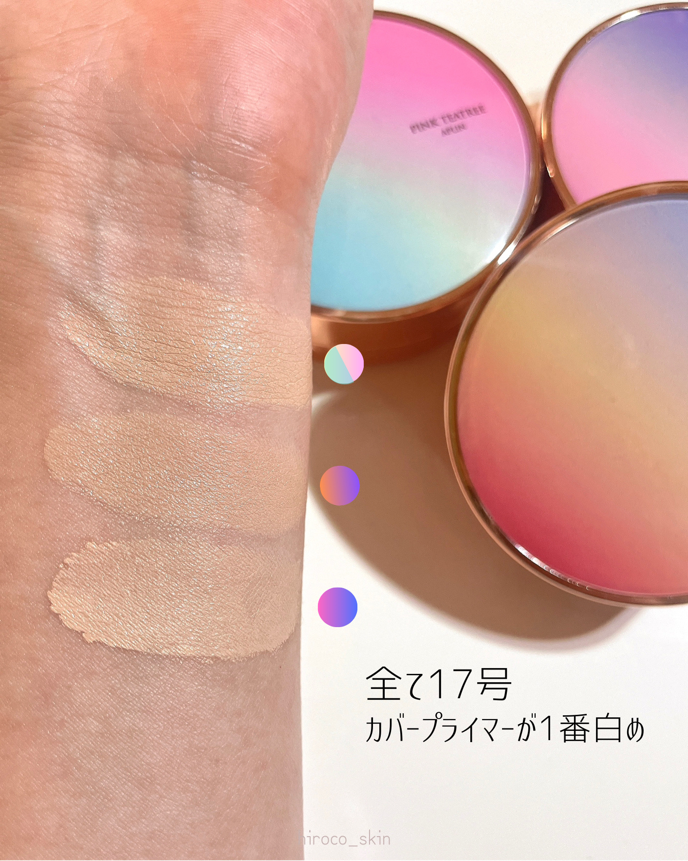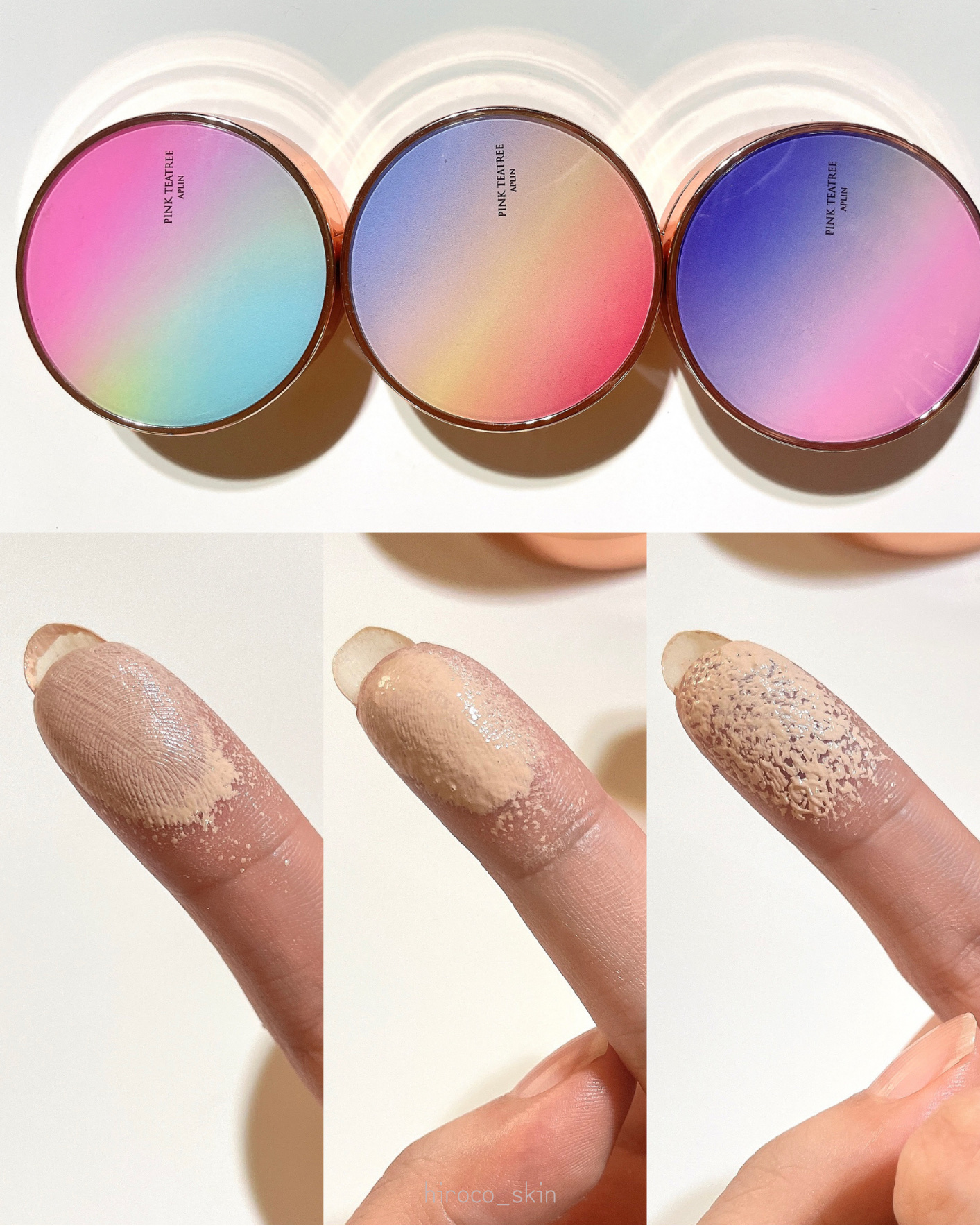 APLIN ピンクティーツリーカバークッション 21号ライトベージュ 2,490円(税込) 少量でよく伸びてハイカバー! 赤みやくすみをしっかりカバ一できるのに、厚塗り感のないなめらかな仕上がり♡ ハイカバーなのにナチュラルなツヤ感とサラッとしつつ、乾燥崩れしにくい仕上がりに感動します!!