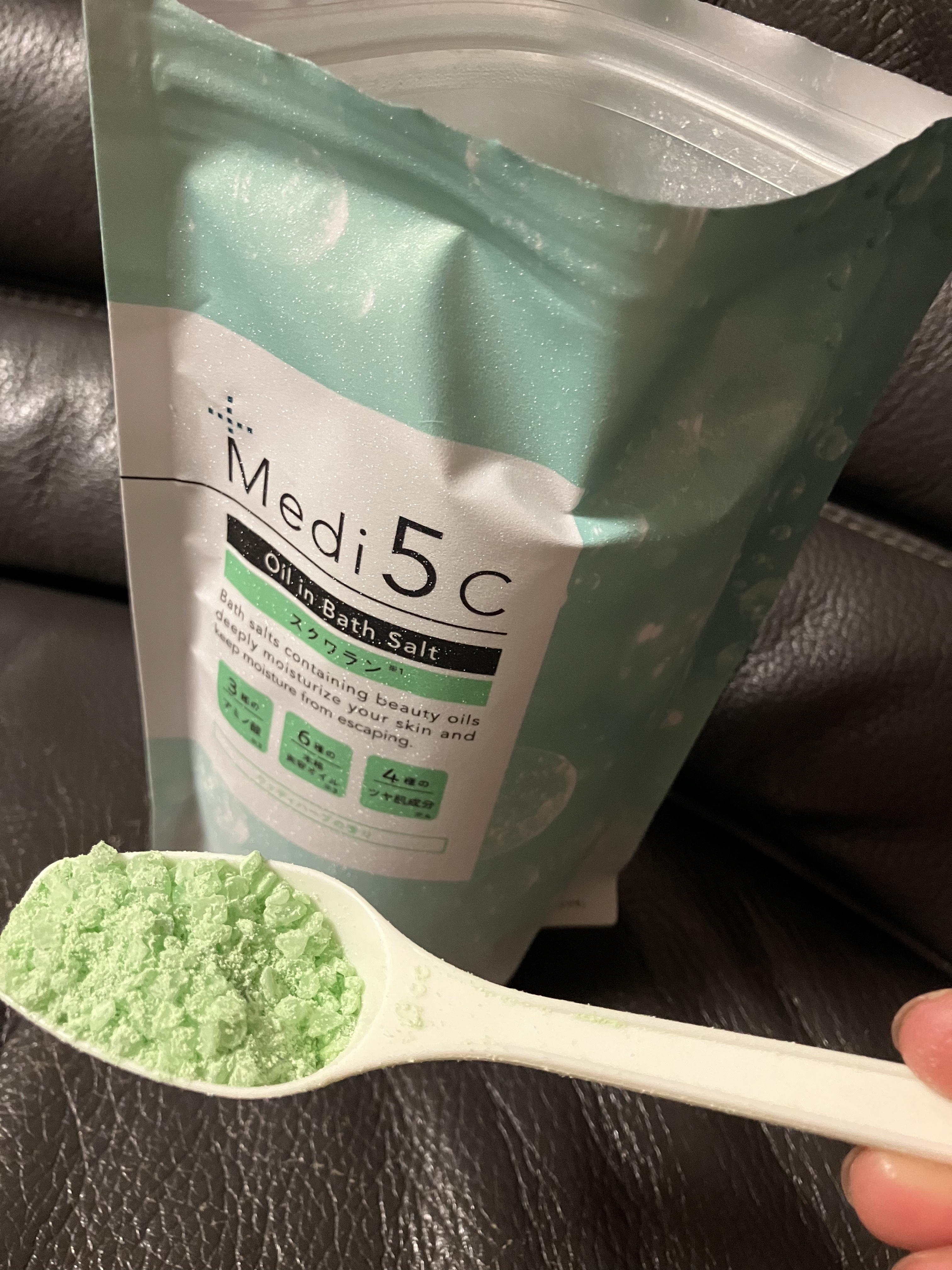 スキンケア×身体メンテナンスを同時に叶えてくれるバスソルトで、#第3のバスソルト と呼ばれています。 「オイル×バスソルト」の新処方で、湯面に美容オイルが浮くので、湯船からあがる際に、美容オイルが全身に密着し潤いをキープしてくれるんです。 ビタミンC誘導体は、シトラスクローブの香りでさわやかな印象でした。にきびや肌荒れが気になる方におすすめの入浴剤です。