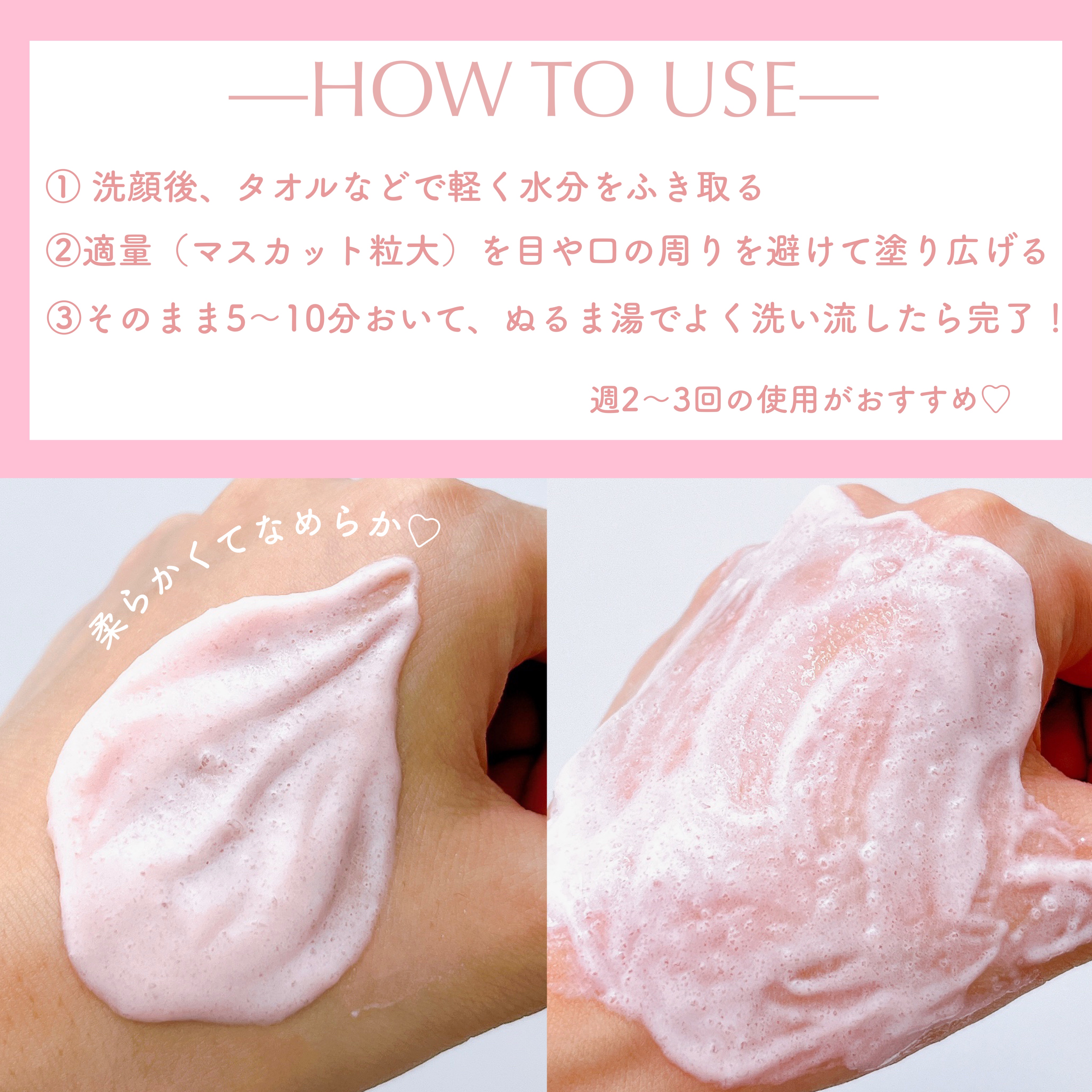 - 柔らかいテクスチャーの洗い流すパック。 角質ケアをし肌を滑らかに整え、さらに洗いあがりもつっぱり感を感じにくく、しっとり潤います。