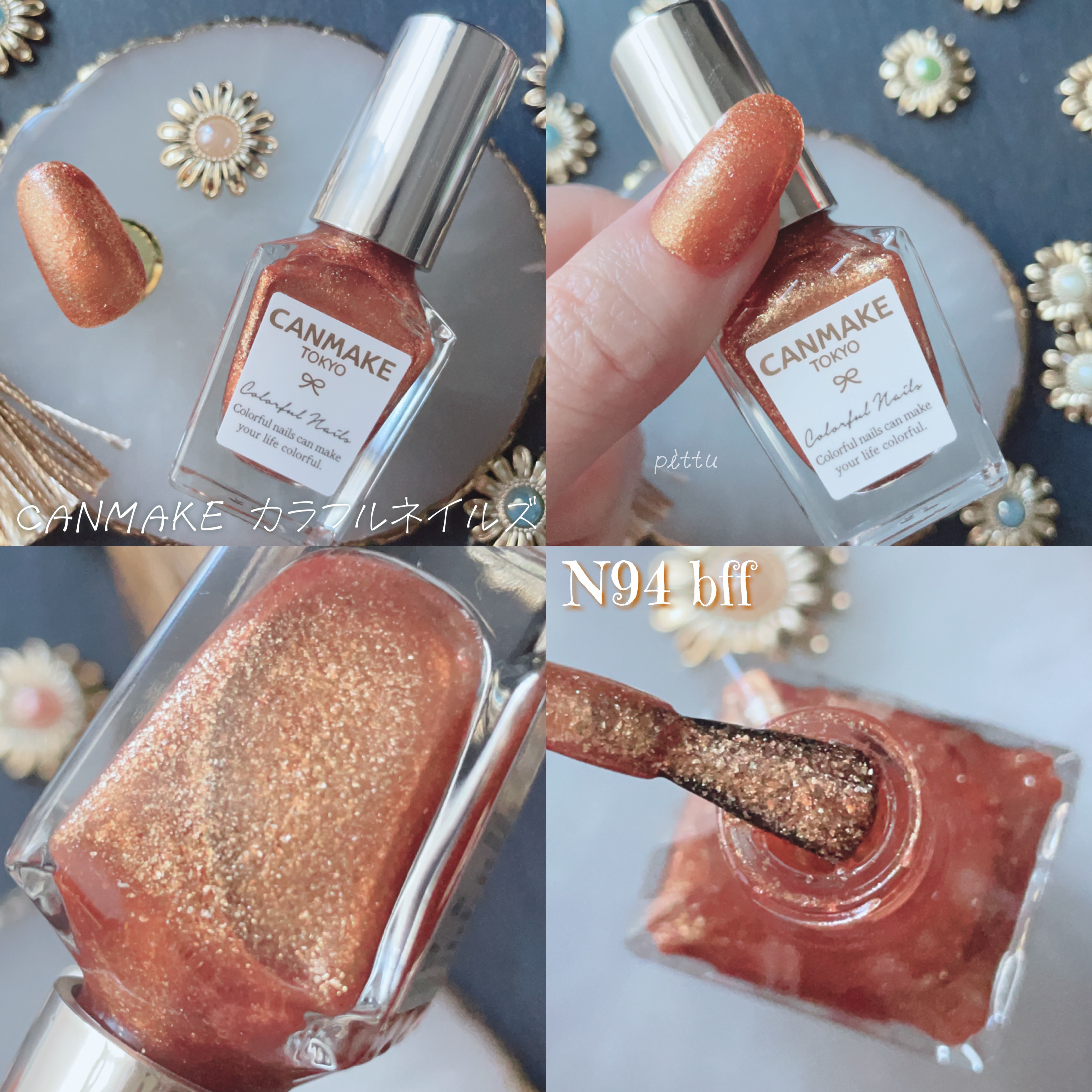 かぼちゃ色と闇夜の影色を重ね合わせたスモーキーパンプキン彩度低めなパンプキンブラウンオレンジが強すぎないのでブルベ夏の私でも使えました◎どちらかというとイエベの方にぴったりのカラー! 深みのあるオレンジレッドは塗り重ねるたびに濃く、深みのある色みにイエベ秋にぴったりなお洒落ブラウン🍁赤みがあるおかげでブルベでも使えました◎ 彩度低めなレッドブラウンにクリスマスらしいグリーンのパールが煌めくカラーブルベでも使えるブラウン!冬らしく落ち着いたらブラウンと意外性のあるクリスマスのキラキララメの斬新な組み合わせが限定らしくて◎