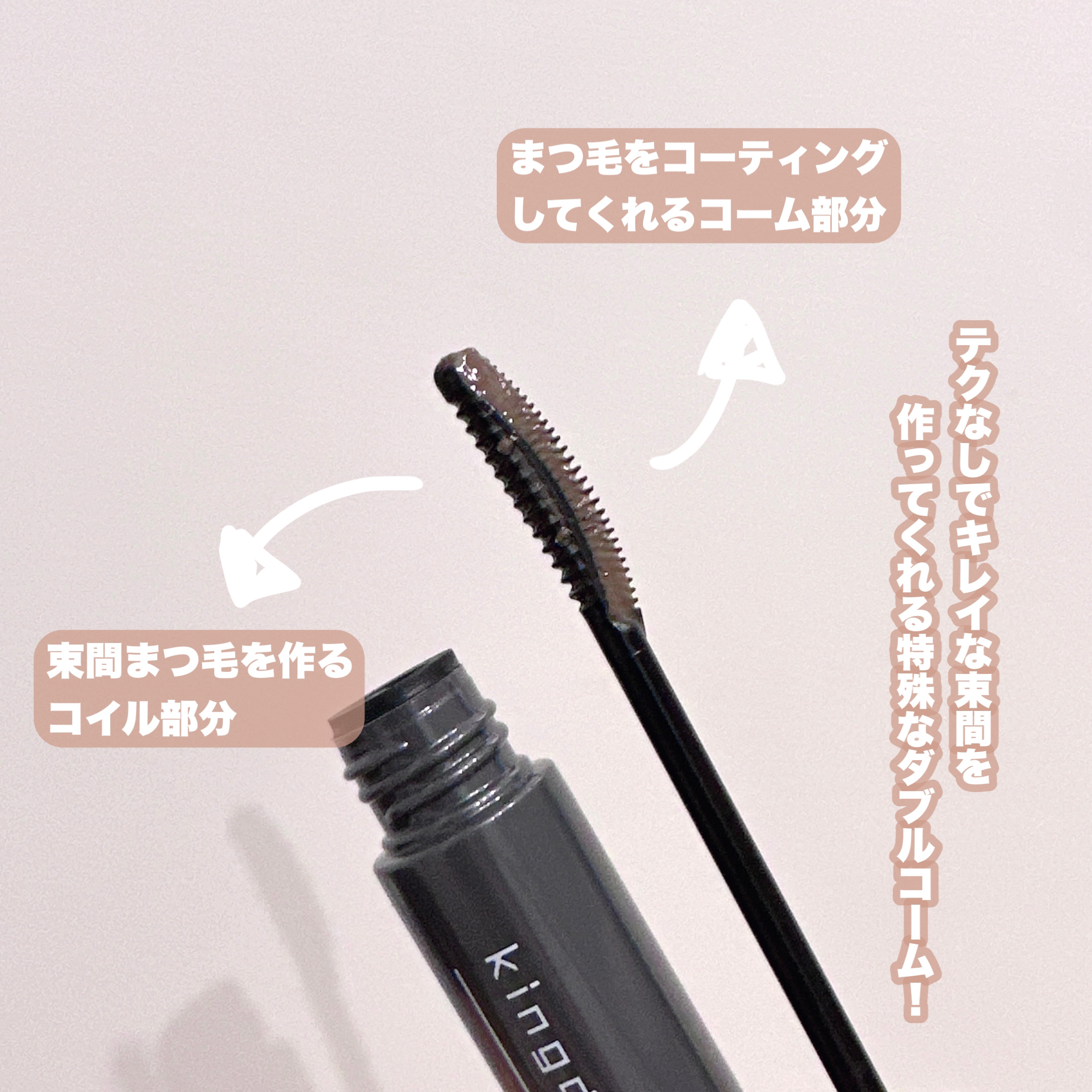 ピンセット不要でトレンド束感まつ毛に! SNSでもか!な!り!話題になったキングダムのマスカラシリーズに、待望のロングタイプが仲間入り🖤🖤 スーッとダマなし、伸びる束感まつげ。 ロ漆黒&繊維入りでしっかり盛れる盛り重視派の束感ロング。 テクニックいらずで簡単束感まつ毛に仕上がる 繊維配合でさらにロング効果がプラス。