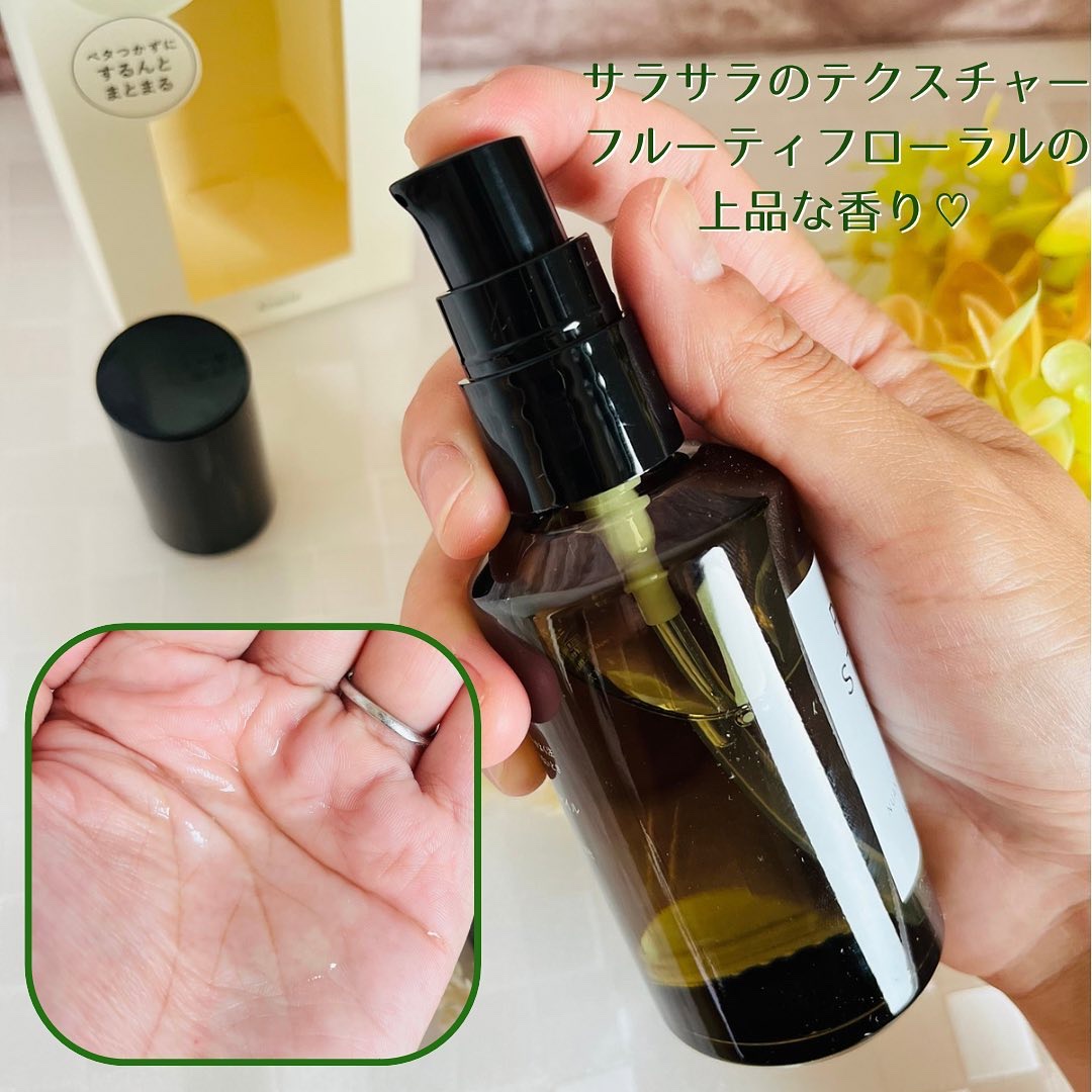 髪型を形作ることで質感=ツヤをコントロール✨️ 髪を美しくスタイリングする「質感コントロール処方」採用 ベタつき感はなく、仕上がりは指通りのよい髪へ💗 自然なツヤと、まとまり感🤗 オイルなのに塗り終わっても手がベタつかないのも嬉しいポイント💗