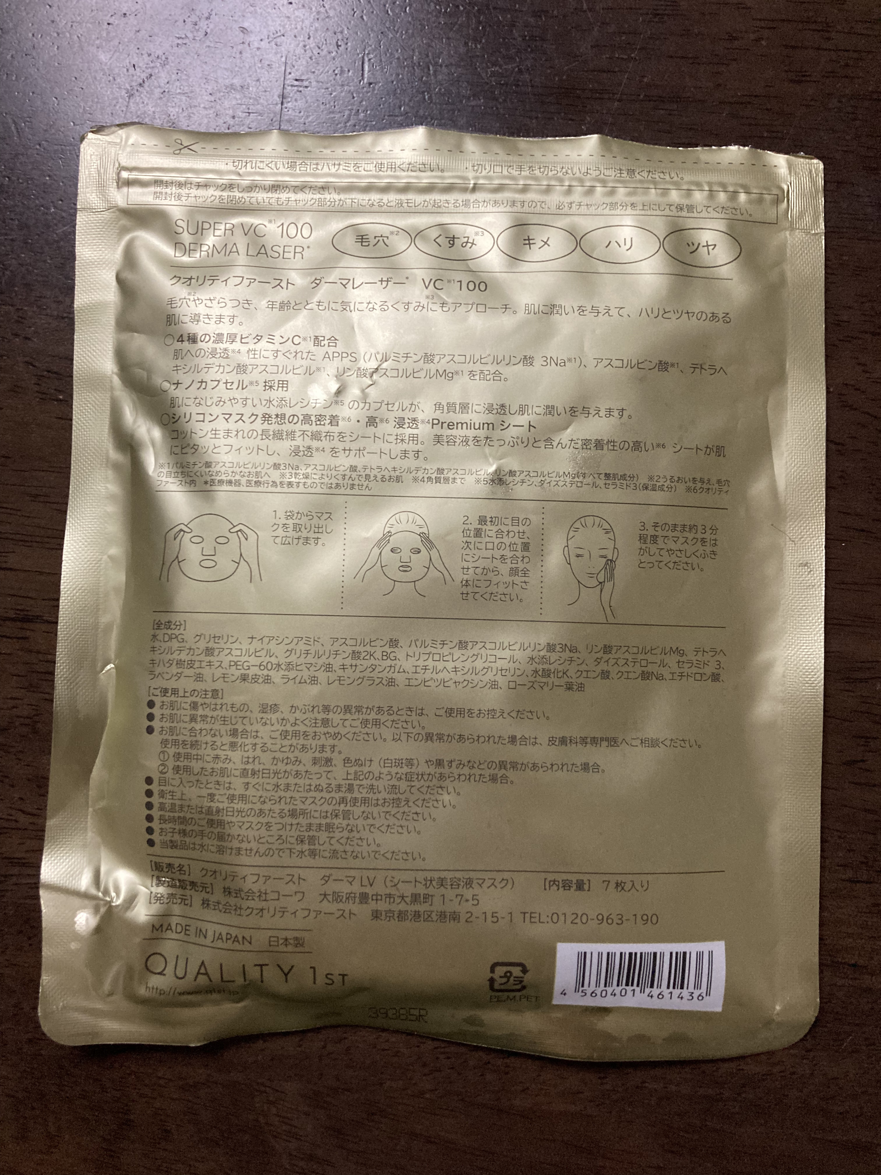 商品詳細情報クオリティファースト ダーマレーザースーパーVC100マスク