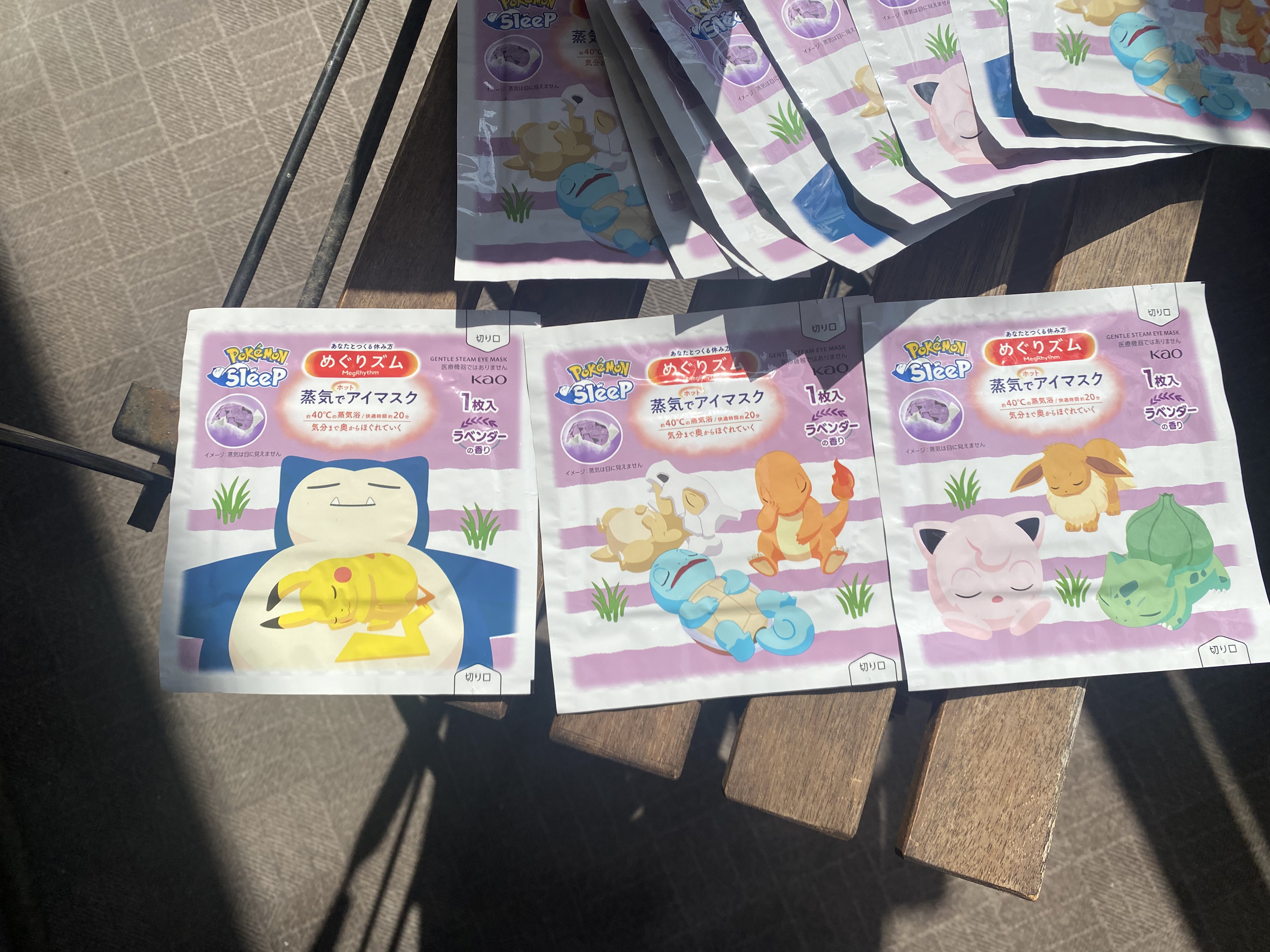 めぐりズムの蒸気でホットアイマスク ラベンダーの香りをご紹介🪻 ラベンダーの香りはパッケージも紫でポケモンたちも紫が似合う子達が多い?と思いました💜 寝る前につけると目の疲労が取れるような感じがして最高です😂✨じんわりと温かいので眠気も誘われる、、🥱