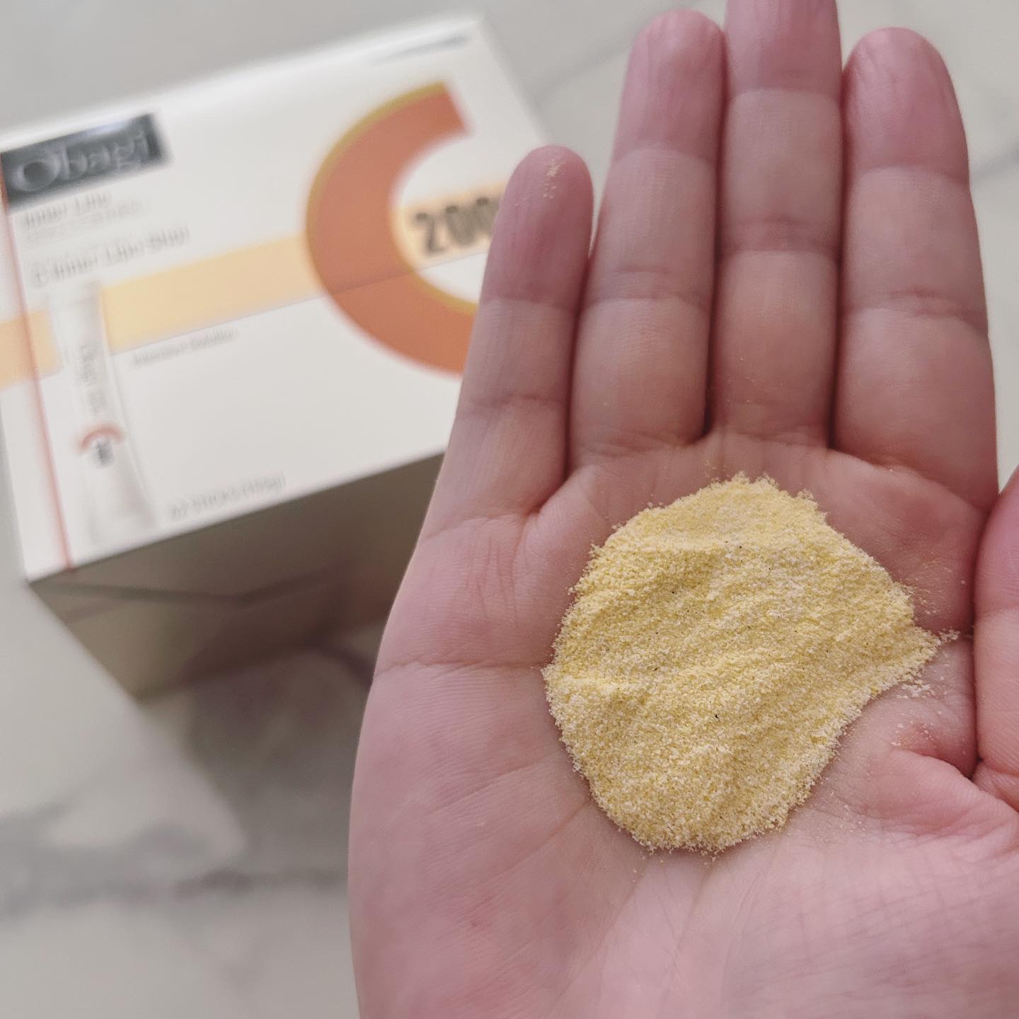 - オバジが提案する飲む“ビタミンC”。オリジナルのリポショットC*を配合し、すばやく届けることを目指し開発した顆粒タイプ。内側からハリとうるおいのある毎日を応援し、透き通るような美しさをサポートします。 <オバジ独自の研究により内側にアプローチ> 1. オバジ独自のリポショットC*。ビタミンCを1日(目安量)当たり2000mg配合。 2. 美容サポート成分のコラーゲンペプチド、コラプラス®に加え、ツボクサエキス、ヒハツエキス配合。 3. 毎日続けていただくために、水なしでもお召し上がりいただけるよう味やくちどけにこだわりました。 ・グレープフルーツ風味 ・顆粒タイプ ・ノンカフェイン *ビタミンC、ヒマワリレシチン、ウコンエキス、加工デンプン、加工油脂