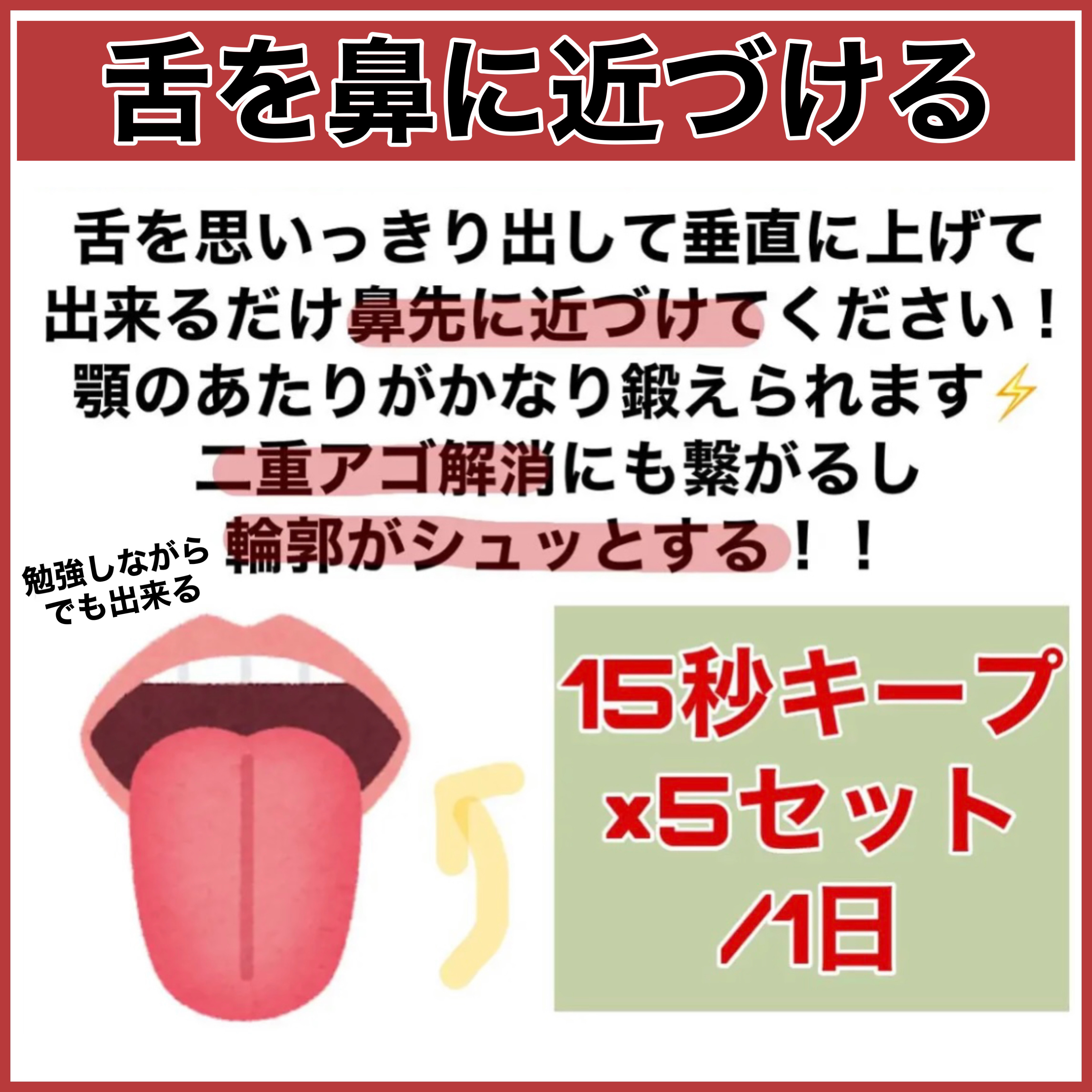 私が全力でオススメしたい、 顎下のお肉を落として、顔をシュッとさせる超簡単な筋トレをご紹介します!!! 用意する物もなく、何かしながらでも出来る筋トレです🙆🏻👌✨ 毎日継続すると、1週間以内に効果が出ると思います!! (見た目に出るのはもう少し時間がかかりますが、触るとスッキリしたのがほんっっに分かる!!!) 筋トレ❶ 筋トレ❷ すっごく効果があるので、皆さんもぜひ試してみてください!!