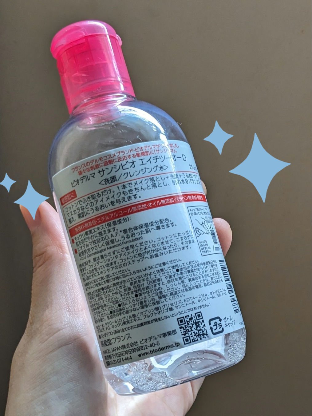 - ※2025年11月下旬〜250ml・500mlの商品パッケージを順次リニューアル。尚、これにかかる商品の返品・交換は承っておりません。 肌にやさしい使い心地で、マスカラなどのアイメイクも素早く落とします。 敏感肌さんも、面倒くさがりやさんも!手放せない!時短クレンジング水! コットンでふき取るだけ。1本でメイク落とし+洗顔+うるおいケア。 マスカラなどのアイメイクもきちんと落とし、肌の水分バランスを保ち、素肌にうるおいを与えます。 ■キュウリ果実エキス(保湿成分): 肌を整えます。 ■ビオデルマ独自のD.A.F.*複合体保湿成分配合。 敏感肌をやさしい使い心地で保湿し、うるおった肌へ導きます。 *D.A.F.(Dermatological Advanced Formulation) 保湿成分: マンニトール、キシリトール、ラムノース