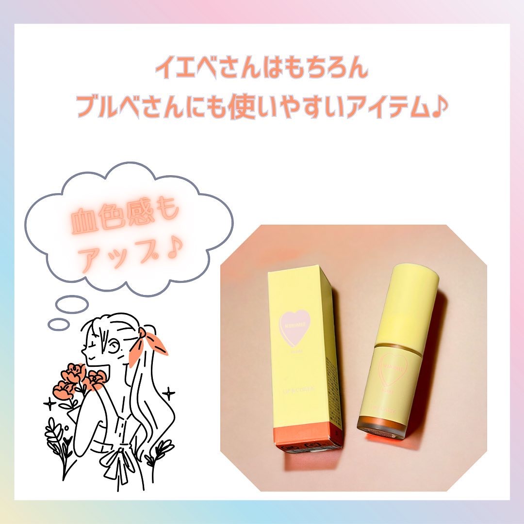 ヘアメイクアップアーティスト・イガリシノブさんプロデュースブランド💗 いつもとちょっと違うテイストのパケがかわいいミニコスメ💕 リップクリームみたいにするする滑らか◎ 元のくちびるの色をミュートしてくれて、上からつけるリップが本領を発揮できます✨ イエベ秋にぴったりなカラー💖 ホリデーシーズンにもぴったりな色味で色もちもよかった◎
