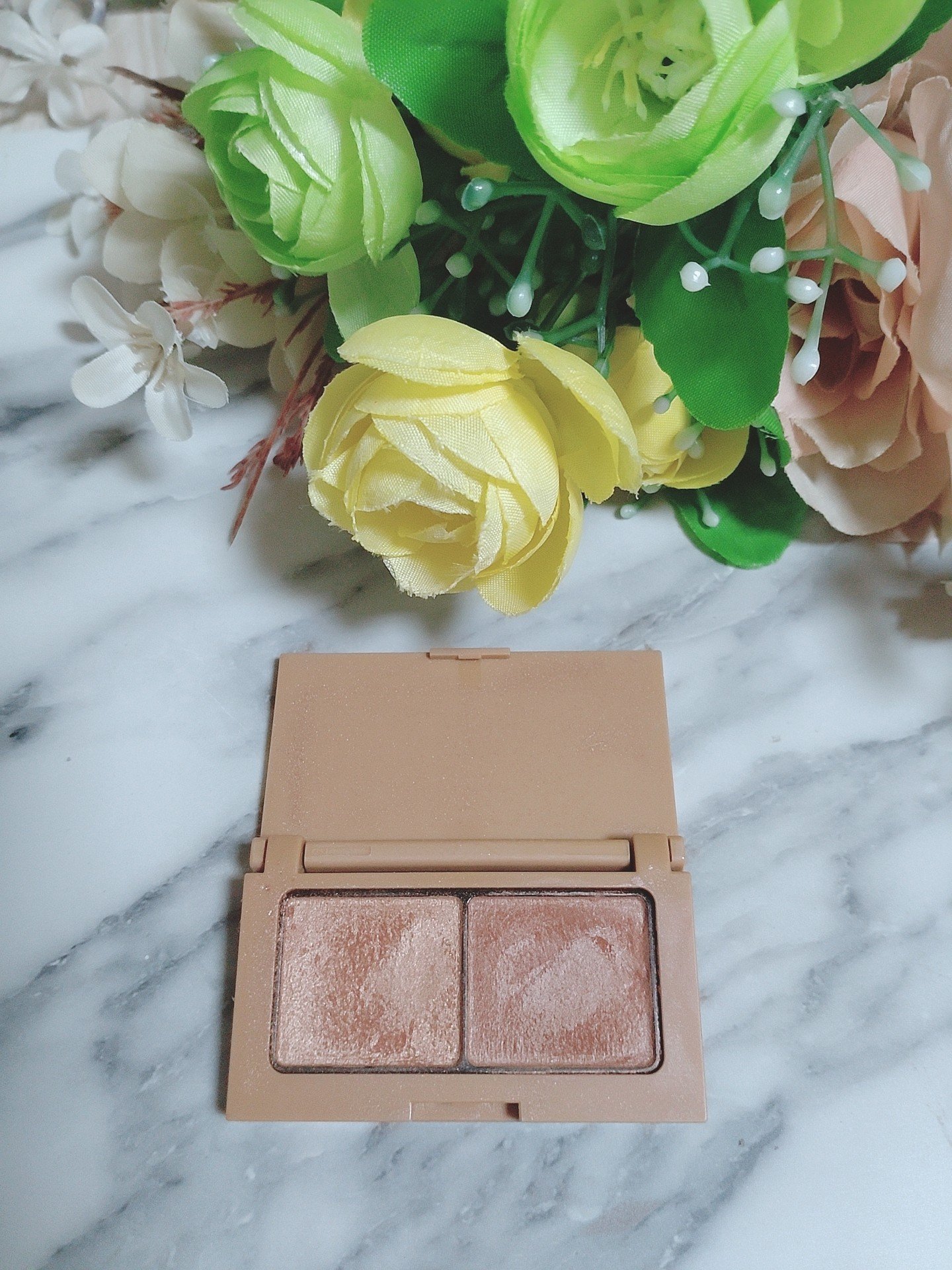ツヤ✖️マットなアイメイク🤍 使いやすい〜✨ シンプルな2色なのにグラデーションと微妙に質感の違うパウダーで立体感あるアイメイクになりました🎶 発色も良くて密着するから仕上がりめちゃ綺麗🤩 おすすめです♪