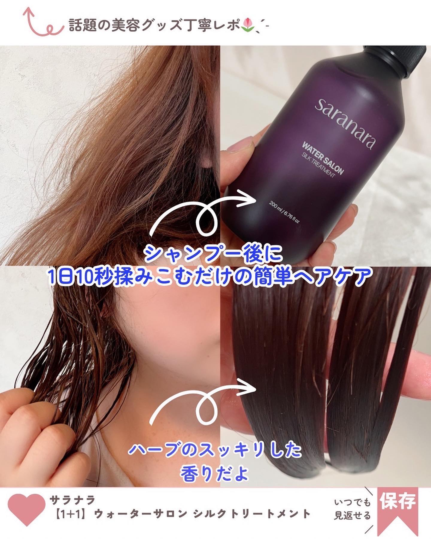 | シャンプーとトリートメントの間に なじませるだけ!手間もかからないのに髪はツヤツヤサラサラに❤︎ | 詳細を見る | ||