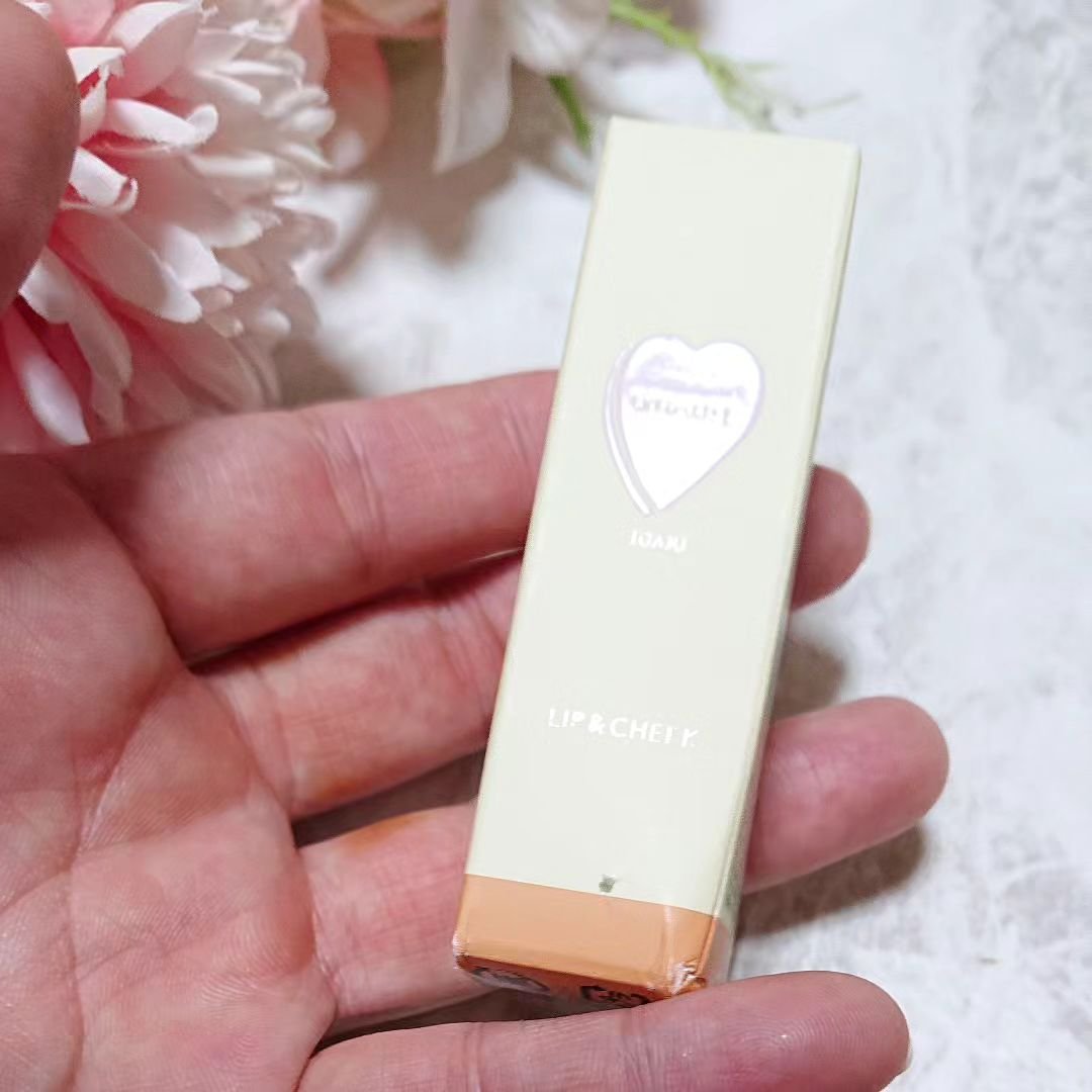 オレンジ系だから合う人にはいいかも! チークとして使う分には肌の内側からぽわっと発色しているような見た目に仕上がって、密着力もそれなりにあるので、色持ちも良さげ リップとして使うには、ティント効果が無いので、食後などには塗り直し必須! スフレ感のある軽いつけ心地で、パウダータイプじゃないタイプのチークでよくある付け過ぎミスはなさそう。 ただ、リップとして使ったときは、やや乾燥と縦ジワの目立ちを感じたので、リップとして使うにはベース使いをするほうがいいかもしれないかなと。 これ1つでリップにもチークにもなり、コンパクトなサイズでより持ち歩きにも便利です。