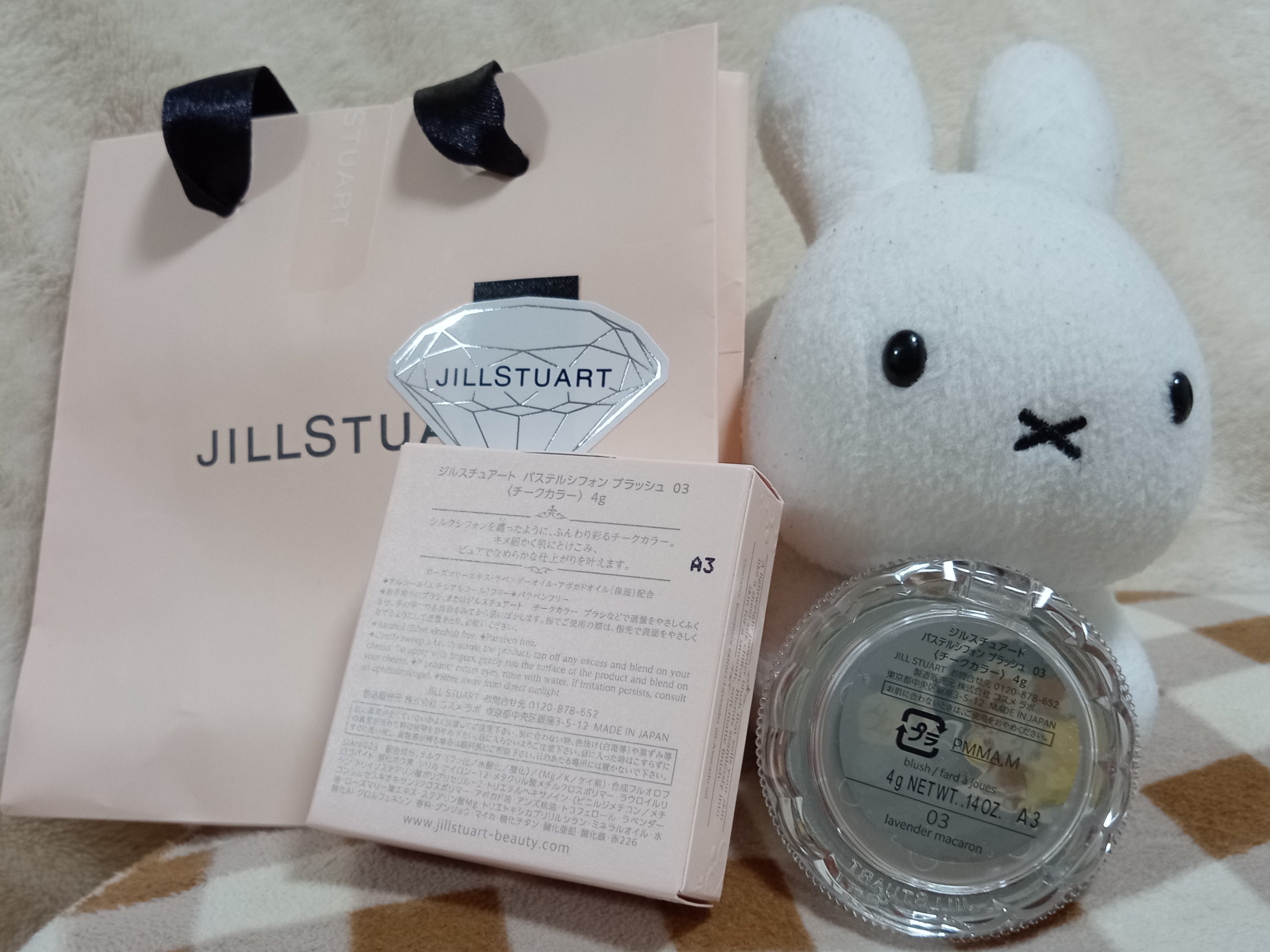 💧チーク🪭#JILLSTUART#パステルシフォンブラッシュ#03 #lavendermacaron🪭容量4g🪭価格Priceless(お心遣いが嬉しいです)🪭香り優しいラベンダーの香りに心が和みます🪭質感/仕上がり勿体なくて愛でて楽しんでますので、またの機会にご紹介したいと思います。🪭評価パッケージと型押しの可愛さと外箱からでもふんわり香るラベンダーの匂いを好評価
