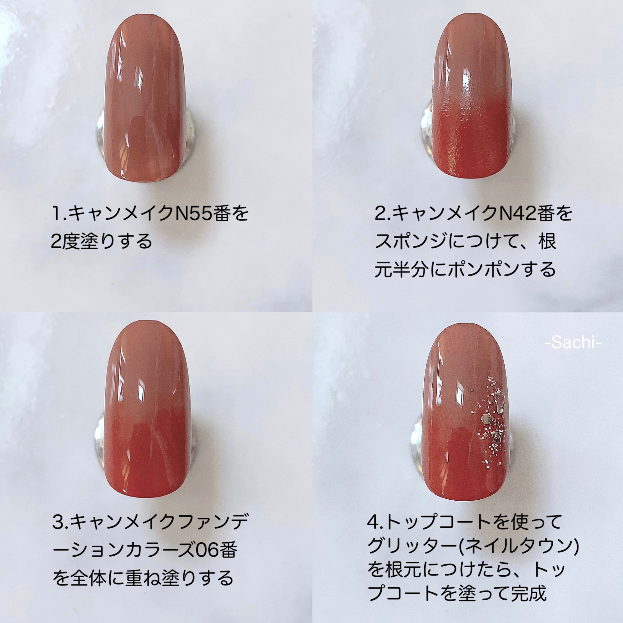 こんにちわ♡今回はキャンメイクのマニキュア2色で出来る、簡単グラデネイルのご紹介です💕先端にかけて白くなるベイビーブーマーは、美爪に見えるのでグラデの中でもとても人気デザインですよね(*´꒳`*)やり方は画像を参考にしていただければと思います...