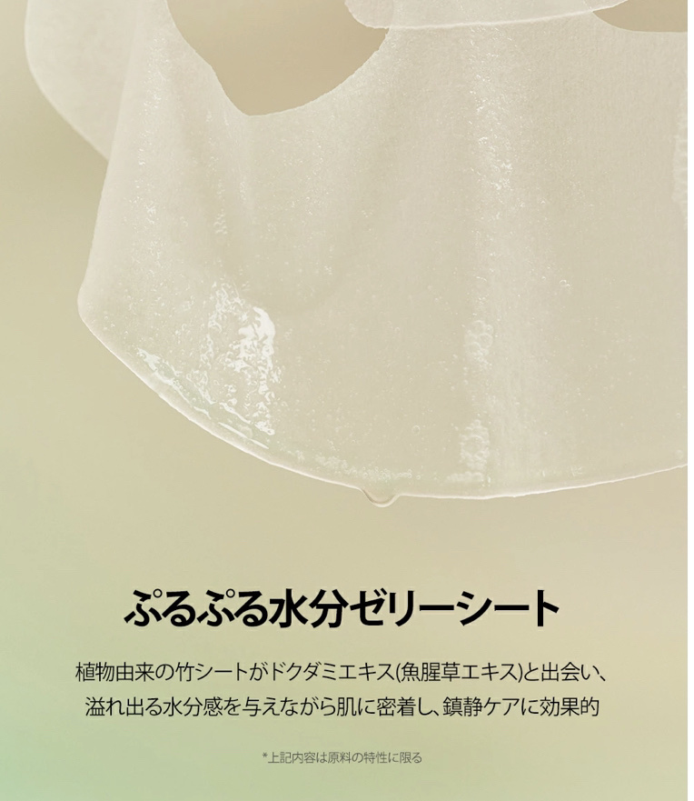 - 水分をたっぷり込めた魚腥草抽出物で清くて透明感のあるお肌へ。#水分ジェリーマスク#厚いクッションシート#自然由来の植物シート