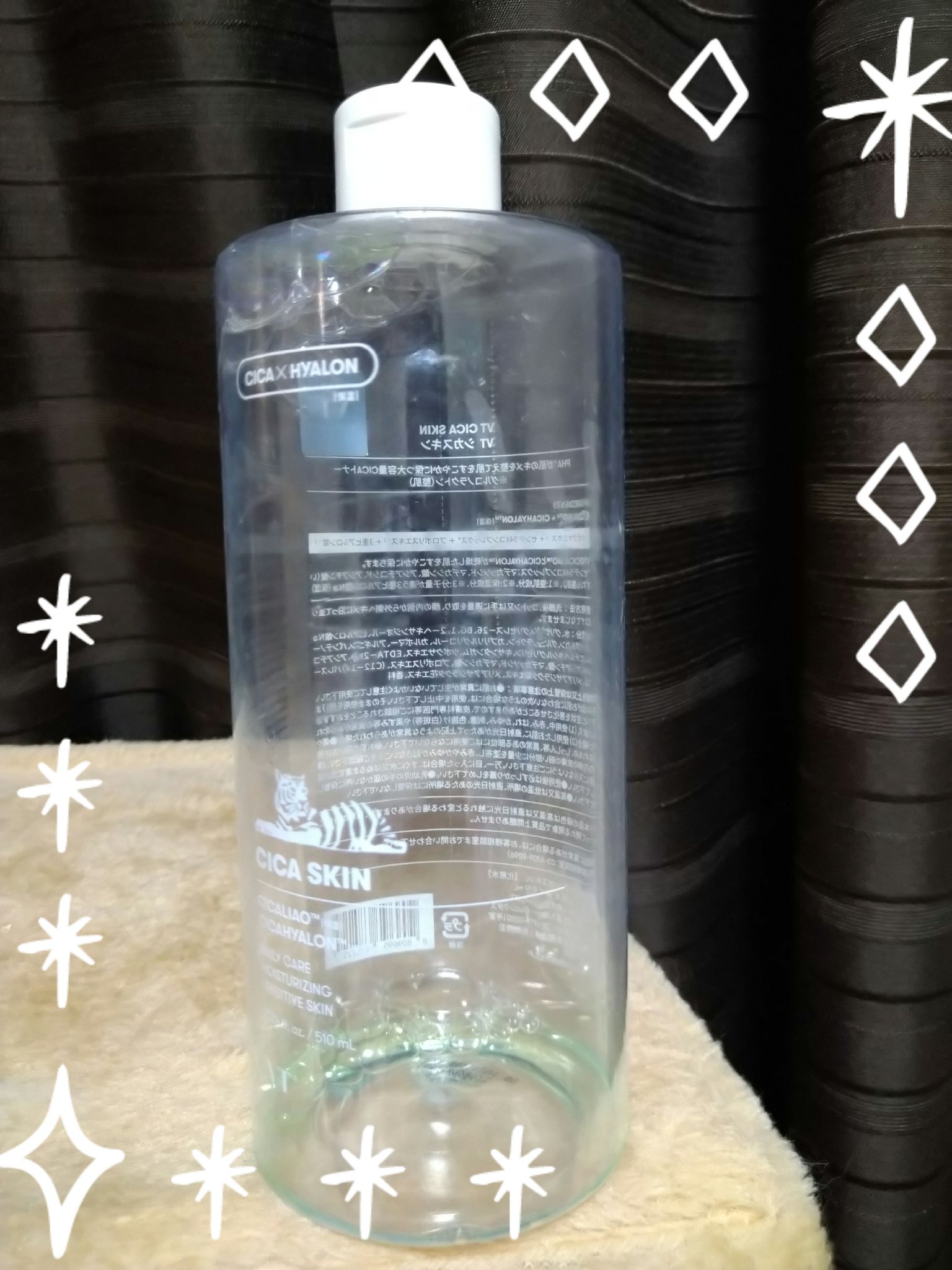- <200ml> 水、グリセリン、BG、1,2-ヘキサンジオール、ペンチレングリコール、ツボクサエキス、プロポリスエキス、アシアチコシド、アシアチン酸、マデカッソシド、マデカシン酸、パンテノール、β-グルカン、チャ葉エキス、クランベリー果実エキス、ラクトビオン酸、(C12-14)パレス-12、カルボマー、(アクリル酸グリセリル/アクリル酸)コポリマー、トロメタミン、メリアアザジラクタ葉エキス、メリアアザジラクタ花エキス、ヒアルロン酸Na、EDTA-2Na、エチルヘキシルグリセリン、香料 <510ml> 水、グリセリン、BG、1,2-ヘキサンジオール、ペンチレングリコール、ツボクサエキス、プロポリスエキス、アシアチコシド、アシアチン酸、マデカッソシド、マデカシン酸、パンテノール、β-グルカン、チャ葉エキス、クランベリー果実エキス、ラクトビオン酸、(C12-14)パレス-12、カルボマー、(アクリル酸グリセリル/アクリル酸)コポリマー、トロメタミン、メリアアザジラクタ葉エキス、メリアアザジラクタ花エキス、ヒアルロン酸Na、EDTA-2Na、エチルヘキシルグリセリン、香料