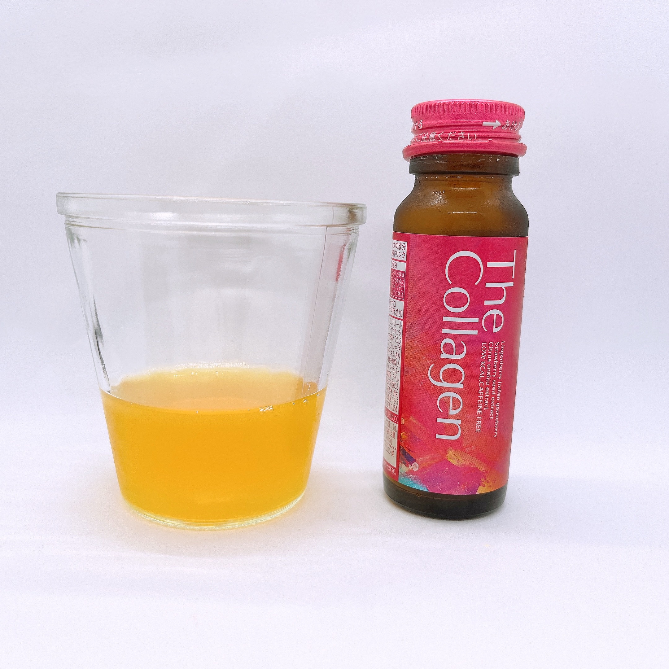 美容特許成分(コケモモ+アムラ果実)に加え、トマト種子エキス、桜の花エキス、GABA、クロセチン、低分子コラーゲン、ヒアルロン酸、セラミド、ビタミンCを配合。 低カロリー、ノンカフェインと女性に嬉しいドリンク! このドリンクはミックスフルーツ味でトロピカルな風味で甘すぎず苦味などもなくおいしくて飲みやすい🍹