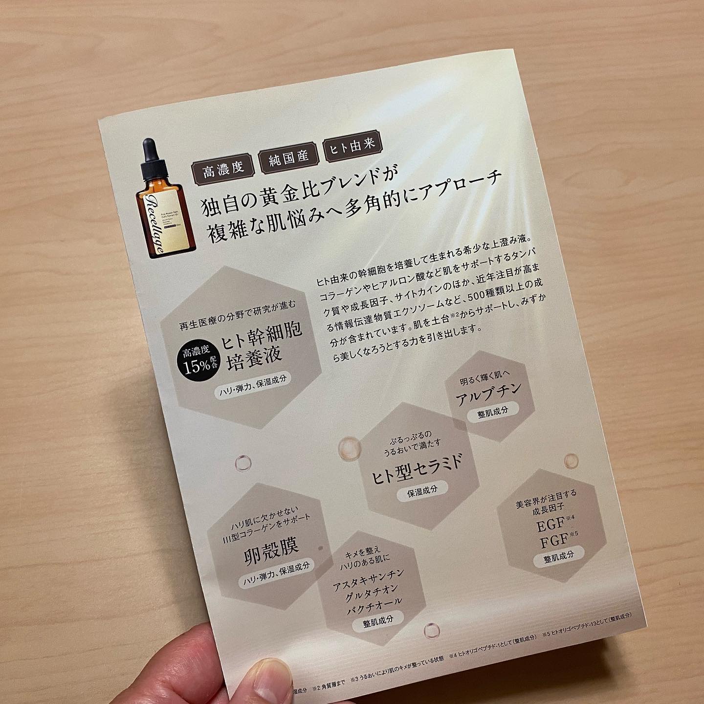 ヒト幹細胞培養液15%も高配合されている美容液⟡.· ヒト幹細胞培養液にはコラーゲンやヒアルロン酸などの皮膚組織をサポートする成長因子、サイトカインなど500種類以上ものタンパク質成分を含んでいてお肌の環境をサポートしてくれる⟡.· とろっとしたテクスチャーでお肌にもスっと馴染んでお肌の奥まで成分が届いてる感じがする𓂃🤍 レチノールの次世代型といわれるバクチオール配合でレチノールと同様にシワやたるみを改善する効果が期待できる美容成分でレチノールよりも刺激が少ないから敏感肌さんも安心して使えるよ𓂃⟡.·