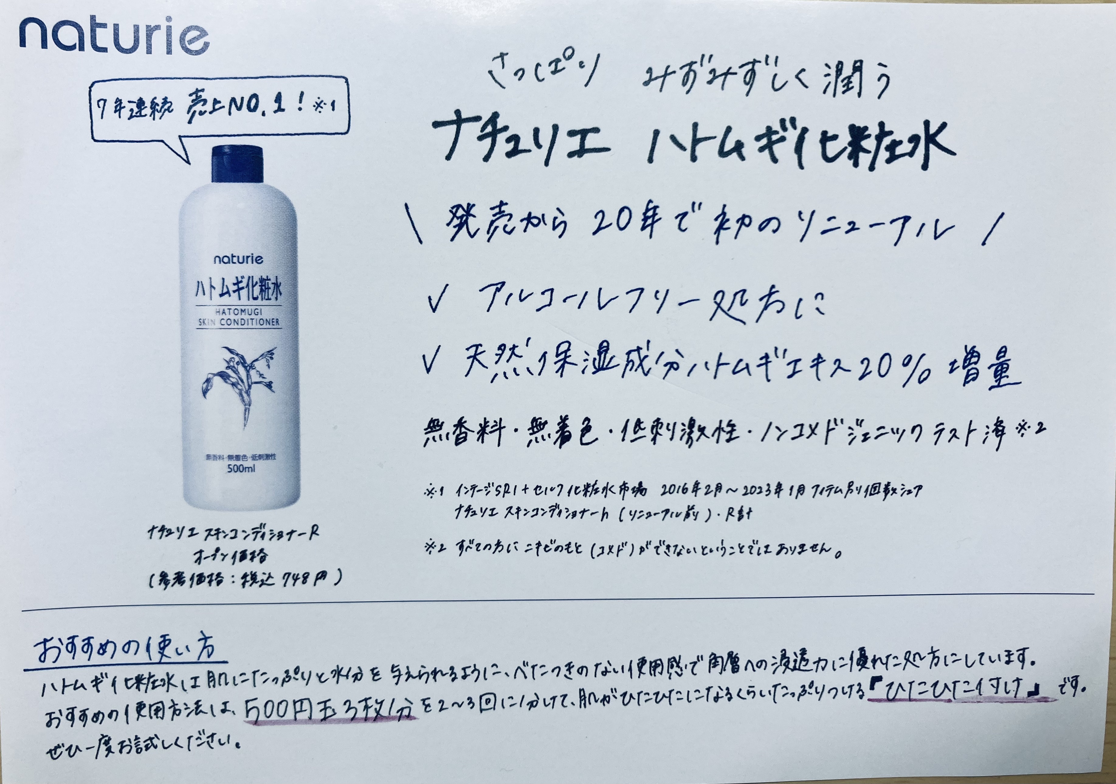 ナチュリエ ハトムギ化粧水(ナチュリエ スキンコンディショナー R ) | 748円 |