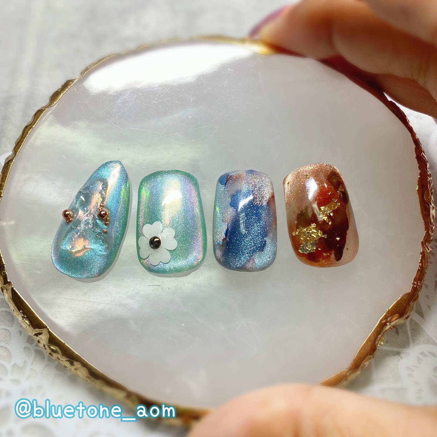 ラメがしっかりしてるし クリアカラーが入ってるから オーロラパウダー無しでも 充分キラキラしました! 反射強めのフィルムなので 実物はもっと うるうるとキラキラが強いです! ビー玉みたい🥺 ネイルシール長持ちさせたいけど ちょっと飽きてきたな〜って時とかに 全然違った印象になるのでオススメです! Seriaのベースジェル 本当にうるうるネイルしやすいので オススメしたい🙆♀️