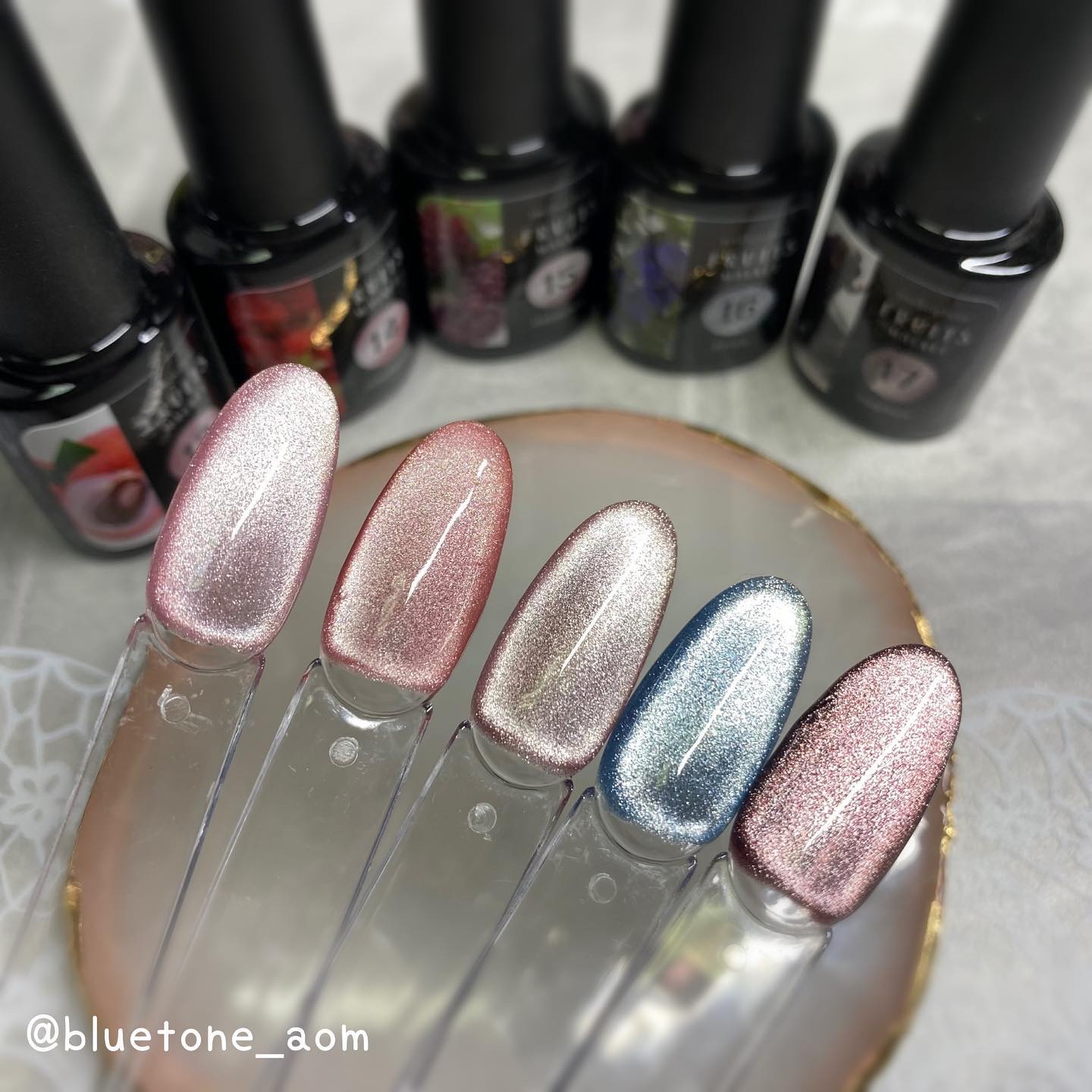 ベースカラーを塗ったらノンワイプトップを塗って硬化します。 クリア→ミラー感はあるけど、発色はそこまで濃くないのでガッツリシルバーを求めてる人は物足りないかも🤔 ホワイト→キレイにシルバーになりました! ミルキーホワイト→シャンパンゴールドみたいな落ち着いたゴールドっぽくなりました😳 ブラック→キレイにシルバーに!やっぱりブラックとシルバーは映えますね🤝ギラギラです! パウダーの粒子はちょっと大きめなのでちょっと不安でしたが擦ってみるとキレイにミラーになりました! ベースカラーで見え方も変わるので色々試しても面白いかもです🥰