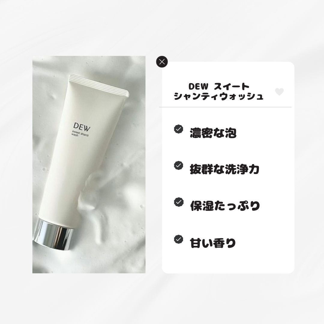 DEWスイートシャンティウォッシュ洗浄力が強くないのでいつでも使える!でも洗顔としてしっかり使えます香りがとても良くて癒されます(甘くさわやかでリラックス感のあるスイートミルキーフローラルの香り)泡質も弾力がありつつなめらかで楽しいです乾燥を...