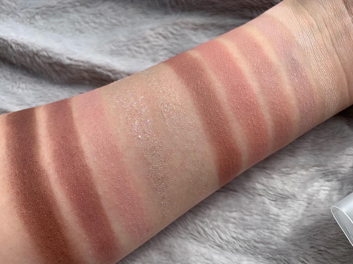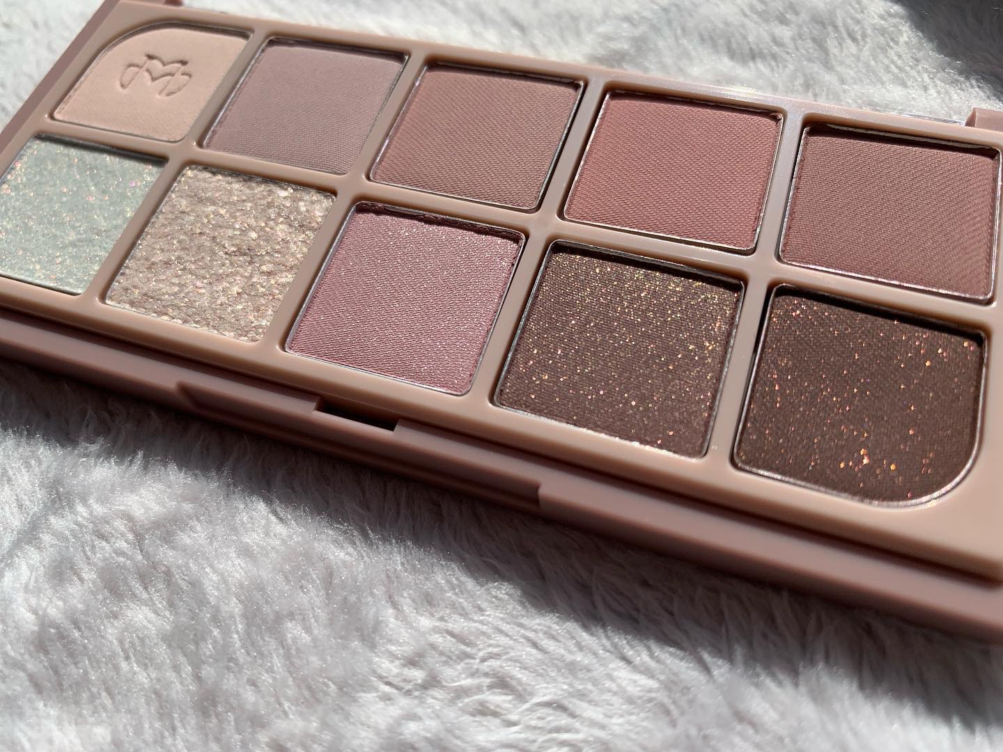 さらっとした軽く柔らかい粉質で、右下のパールは控えめなのでキラキラしたのが苦手な人にも使いやすいパレットだと思います。 グリッターもベースが細かいラメになってるから、ギラギラしすぎてないのが良かった。 好きなんだけど全部の色が思ったよりくすみが強かったので、ちょっと使いこなすのが難しい🤔 あとパレットの作りが少し安っぽいなぁという印象もありました