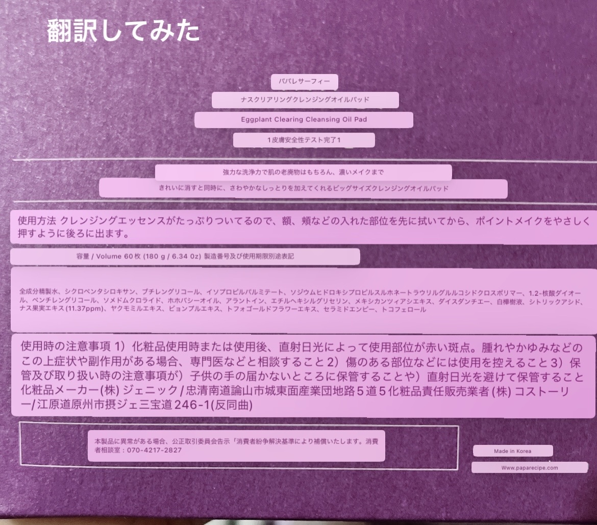 商品詳細情報PAPA RECIPE ナスクリアリングピーリングパッドトナー