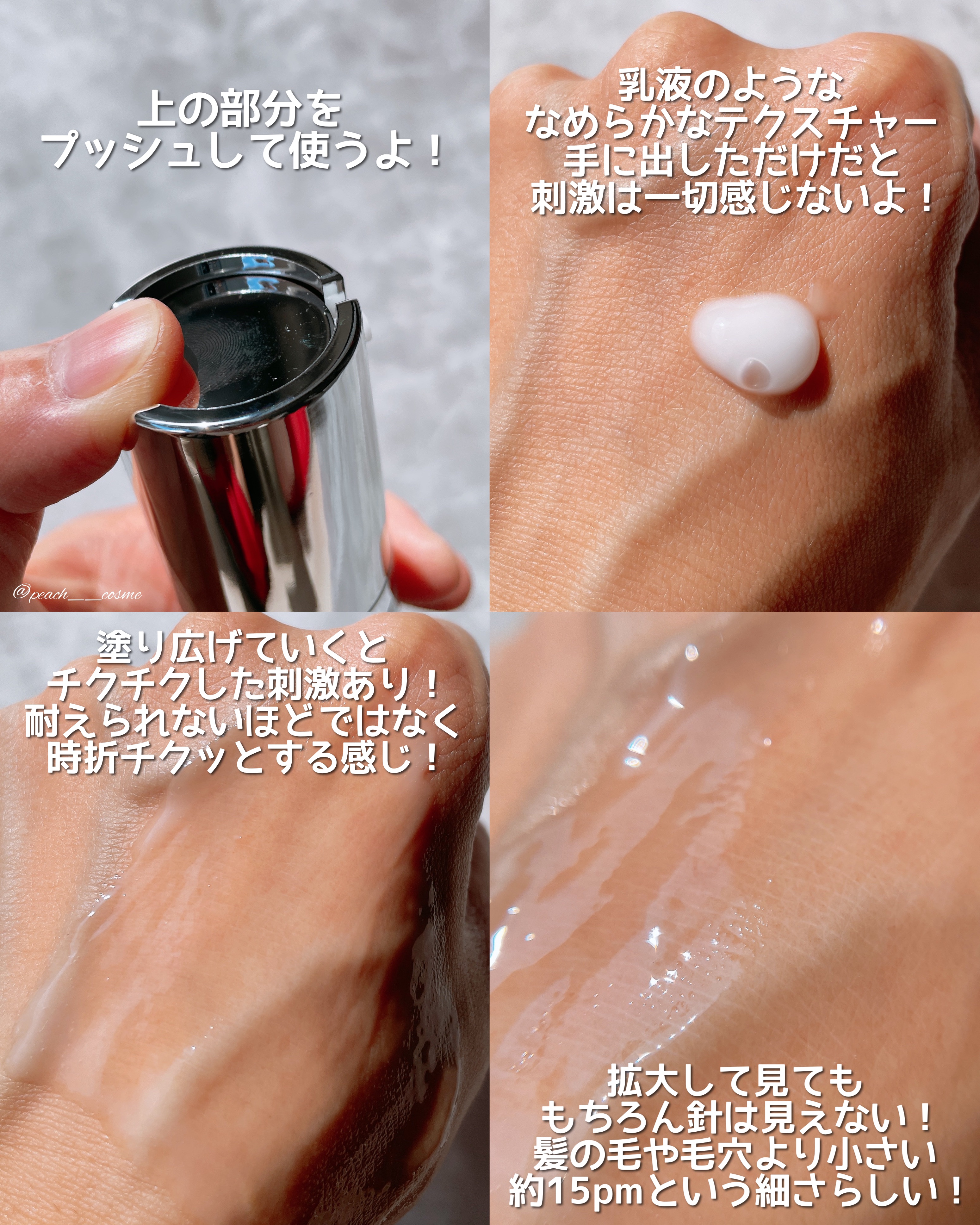 - 肌本来の持つ力と美容成分の届け方に着目。 乾燥でごわついた肌にも角層まで美容成分*1*2を届け、肌本来の美しさを保ち、スキンケアの角層までの浸透をサポートします。 CICA*1と天然マイクロニードル(天然の美容針)*2を配合し独自に開発しました。 シリカ(スクラブ)美容針:195,000本配合 *1ツボクサエキス(整肌) *2シリカ(スクラブ) [使い方] 1. 洗顔後すぐに適量手にとり、顔全体に塗り広げます。 2. 手のひらで顔全体を押さえながら、美容液を肌に入れ込むような イメージでマッサージするように肌になじませます。 [使用ポイント] * 角質ケアが特に必要な個所、気になる箇所への集中スペシャルケアにオススメ! * 顔全体へ塗り広げると、夜の間にエステ級ケアを実現! (顔全体へご使用の際には少量から使用し、肌へのテスト期間を設けてください) ※使用時の注意事項を必ずご確認の上、ご使用くださいませ。