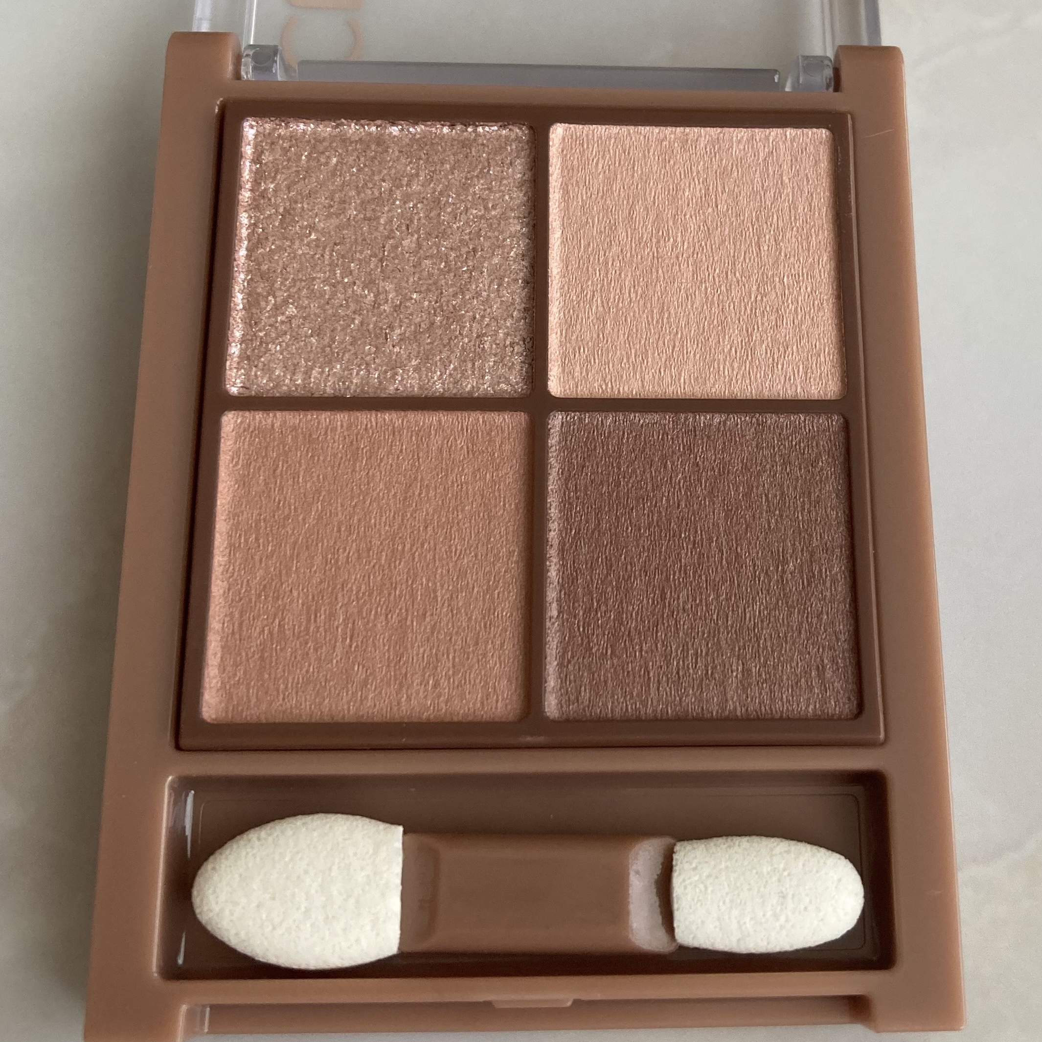 ネイチャーリパブリックのお店に立ち寄った際に半額セールしていて、気になったこのアイシャドウパレットをゲットしました🫶🤍 ベーシックに使いやすいカラーだけが入っている、コンパクトサイズの4色パレット。持ち運びや旅行の際にもぴったりなサイズで一つ持っているとめちゃくちゃ使えそう、、!! ラメもピーチカラーの細かいラメがぎっしり入ったカラーで、初めて触った時粉飛びするかな?と思いましたが、1日使用してみてそこまで粉飛びは気になりませんでした🫡!!
