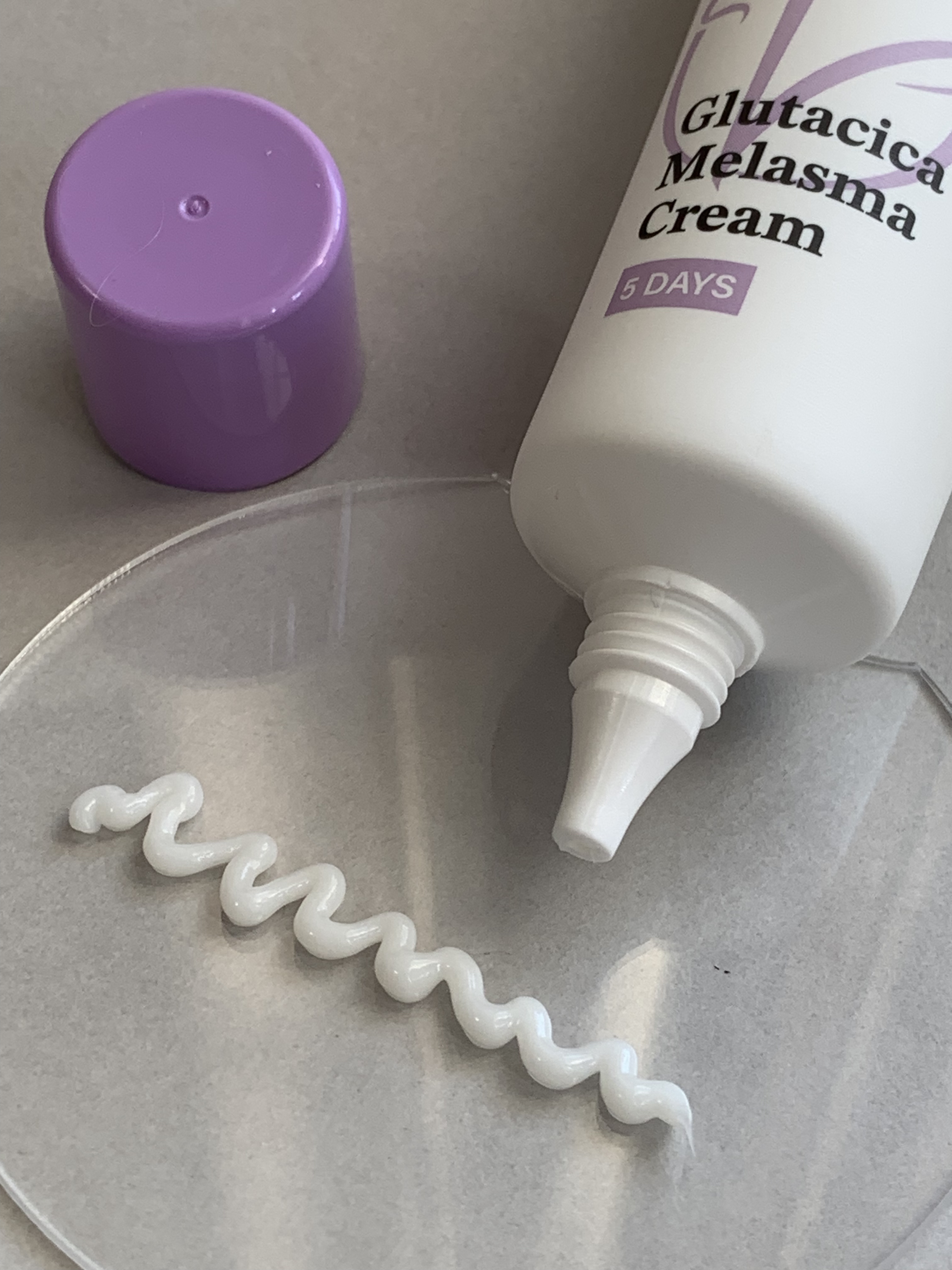 - グルタチオン*1とシカ*2成分配合のフェイスクリーム。 スーっと肌に馴染むテクスチャー。 *1 保湿成分 *2 ツボクサエキス(保湿成分)