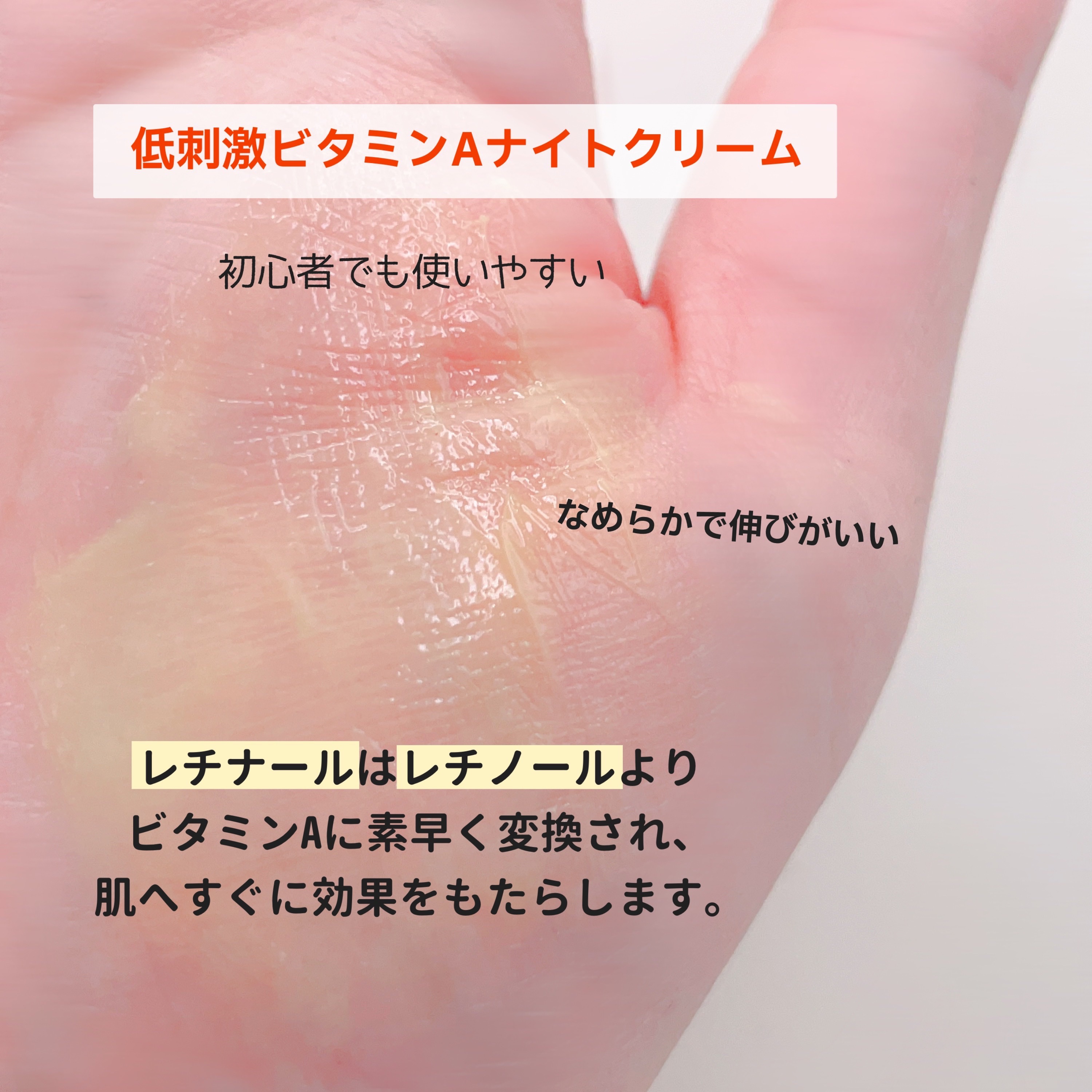 初めてでも使えるレチナールとバクチオールが配合された低刺激エイジングクリーム💛 こっくりとしたホイップクリームみたいな濃密でやわらかなテクスチャー。 保湿力もしっかり感じられて、これからの季節にぴったりだと感じました。 このナイトクリームは、吸収性、結果性、またかゆみ、皮むけなどの副作用を減らすためにバクチオールとレチナールが配合されています。
