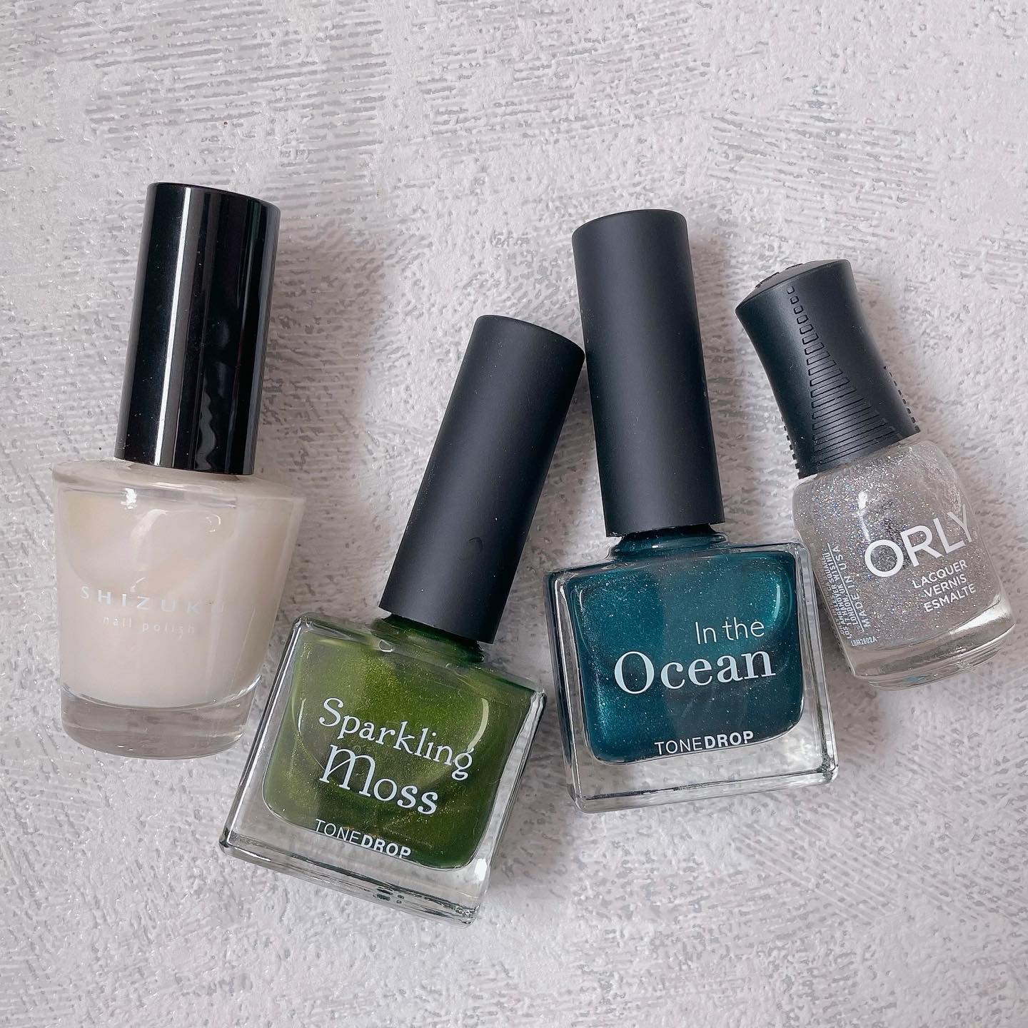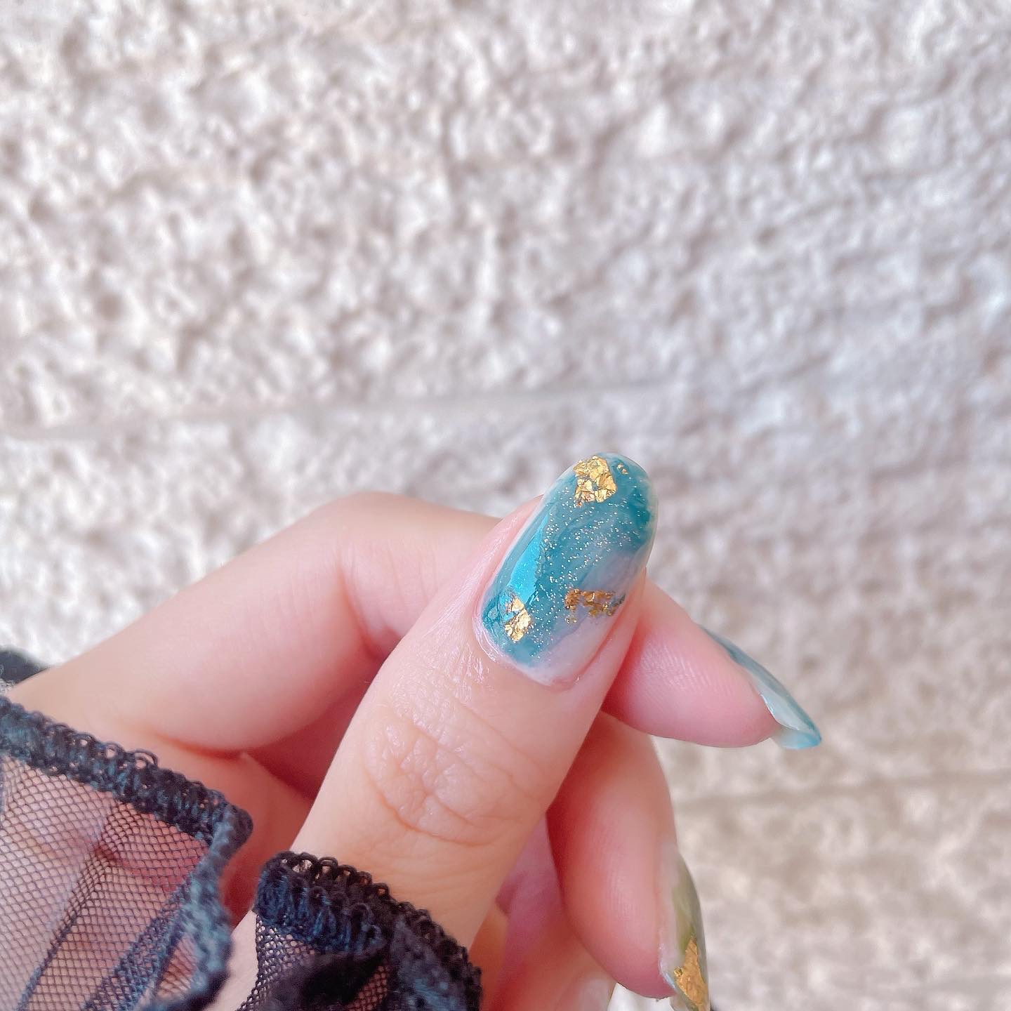 sopo 06アクアプールセルレで購入。室内灯だとブルーグレー🩶自然光で見るとブルーとグリーンが混ざったような綺麗な色🥹💘陽が当たるとよりラメが綺麗だったのですがうまく写真に収めることができませんでした‥一度塗りだと透け感はあるのですがムラに...